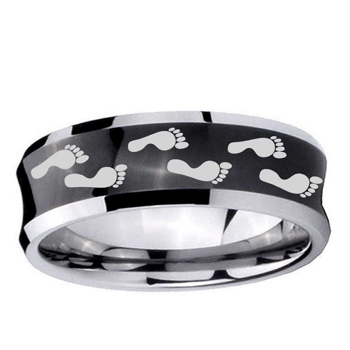 Make a promise with the 10mm Foot Print Concave Black Tungsten Carbide Men's Promise Rings. This concave black tungsten ring with Foot Print design is ideal for commitments.