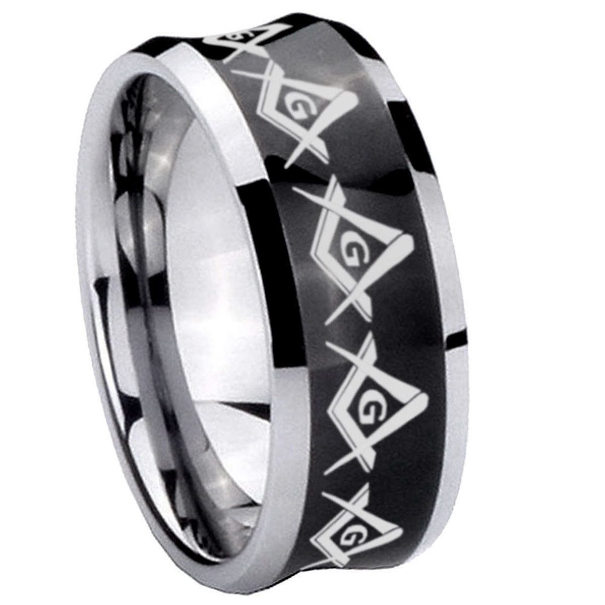 Propose with the 10mm Masonic Square and Compass Concave Black Tungsten Carbide Men's Engagement Band. This concave black tungsten ring with Masonic Square and Compass design is ideal for engagements.