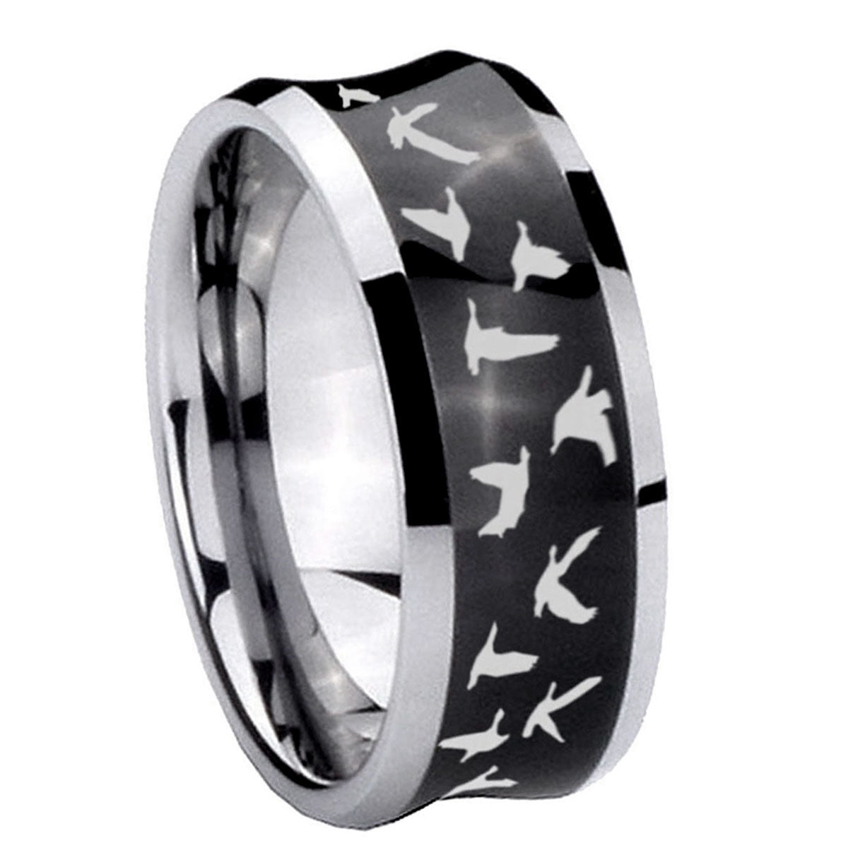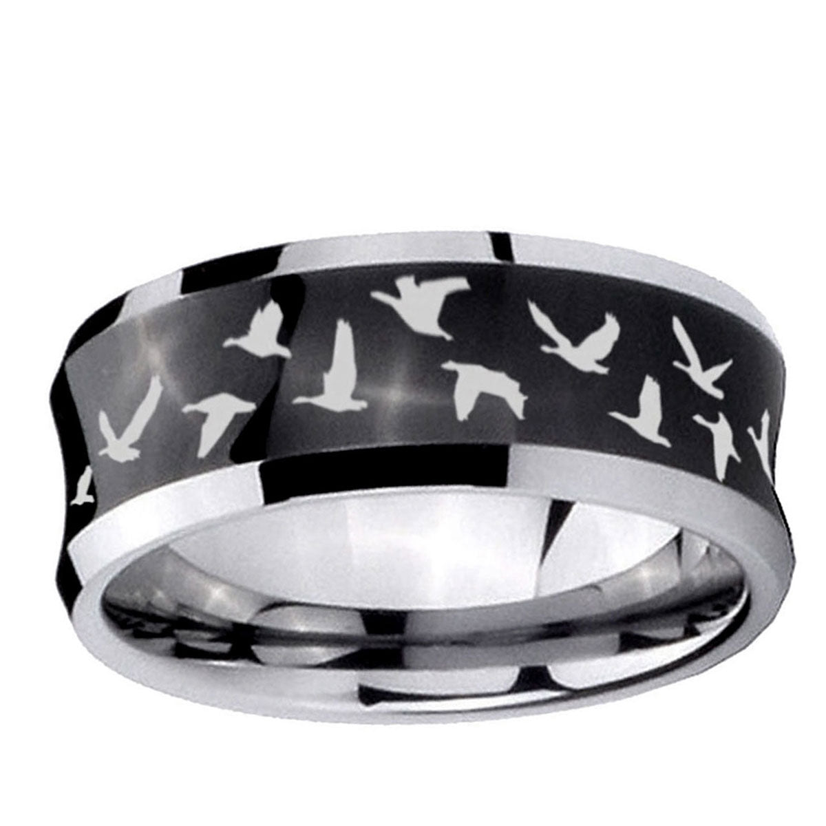 10mm Flying Geese Hunting Concave Black Tungsten Carbide Men's Engagement Band