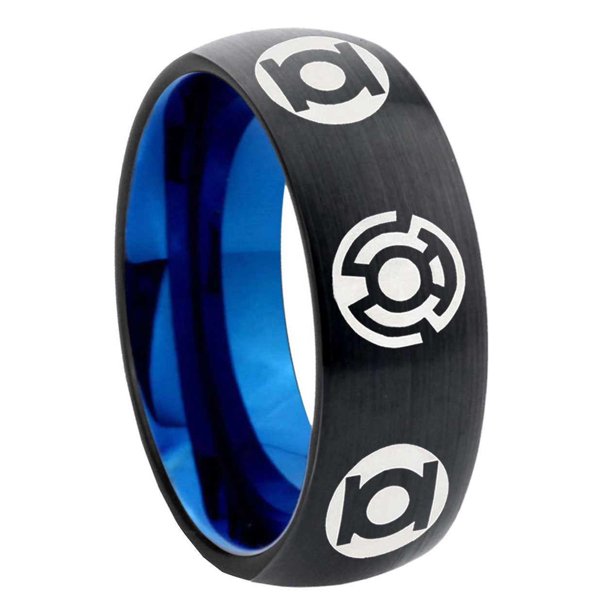 Intruding 5, 8mm Blue Green Lantern Dome Blue Black Tungsten Bands . Offer in both 5mm and 8mm band width black and blue plated finished from size 4 to 14