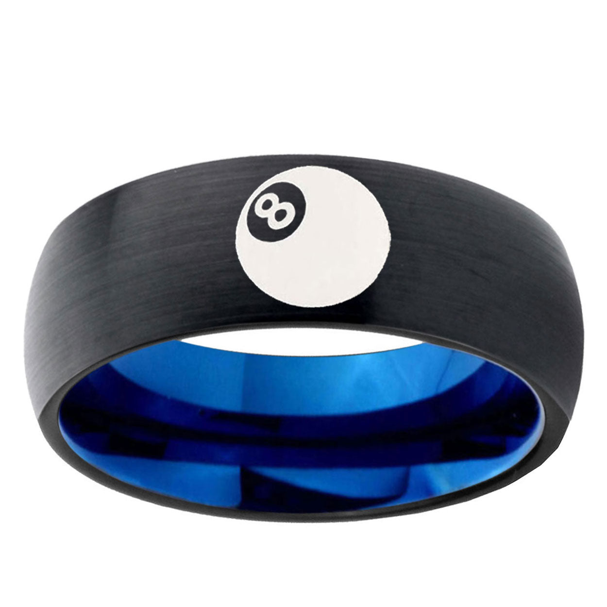 5, 8mm 8 Ball Dome Black And Blue Tungsten Carbide Engraving Ring