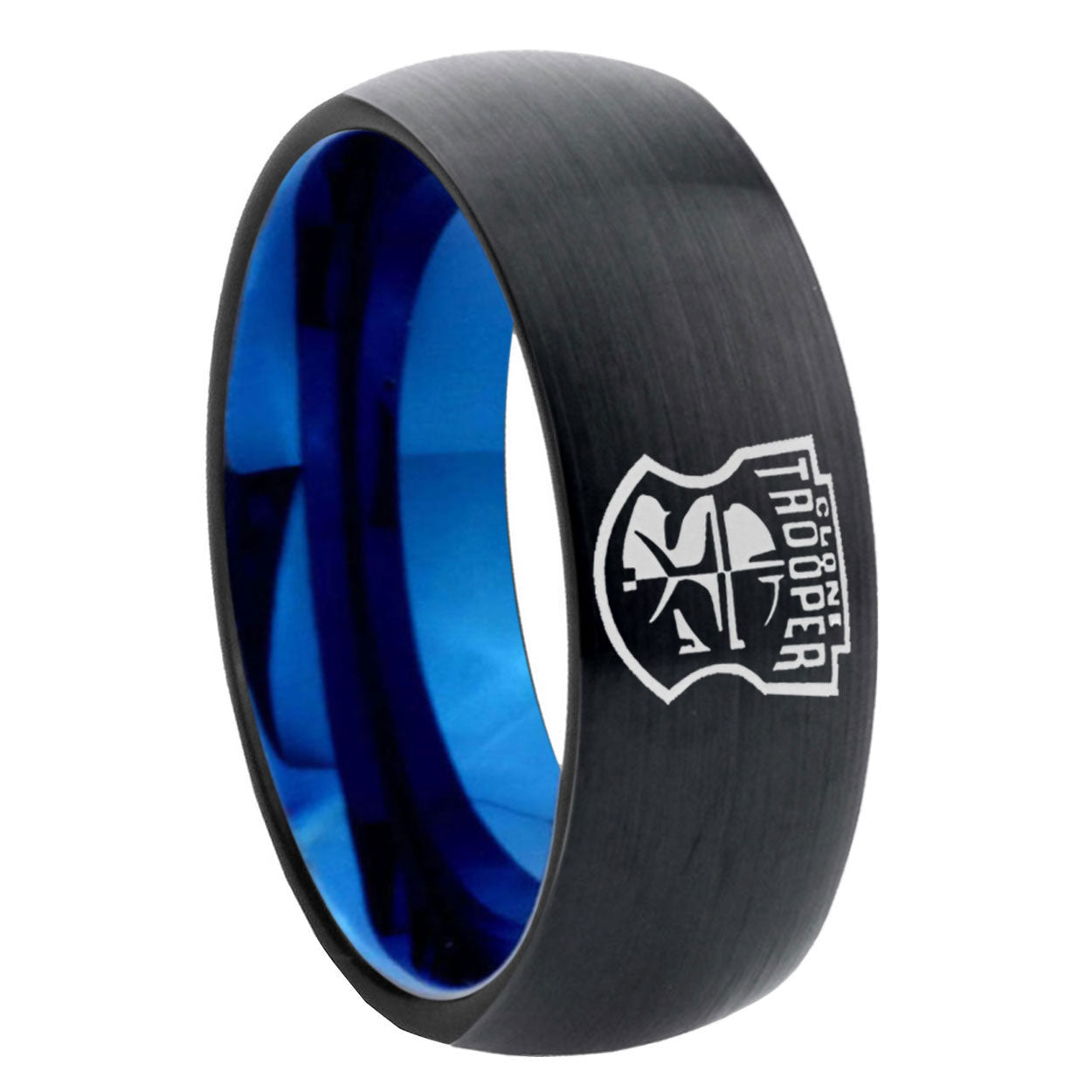 Intruding 5, 8mm Clone Trooper Dome Black And Blue Tungsten Carbide Custom Ring for Men . Offer in both 5mm and 8mm band width black and blue plated finished from size 4 to 14