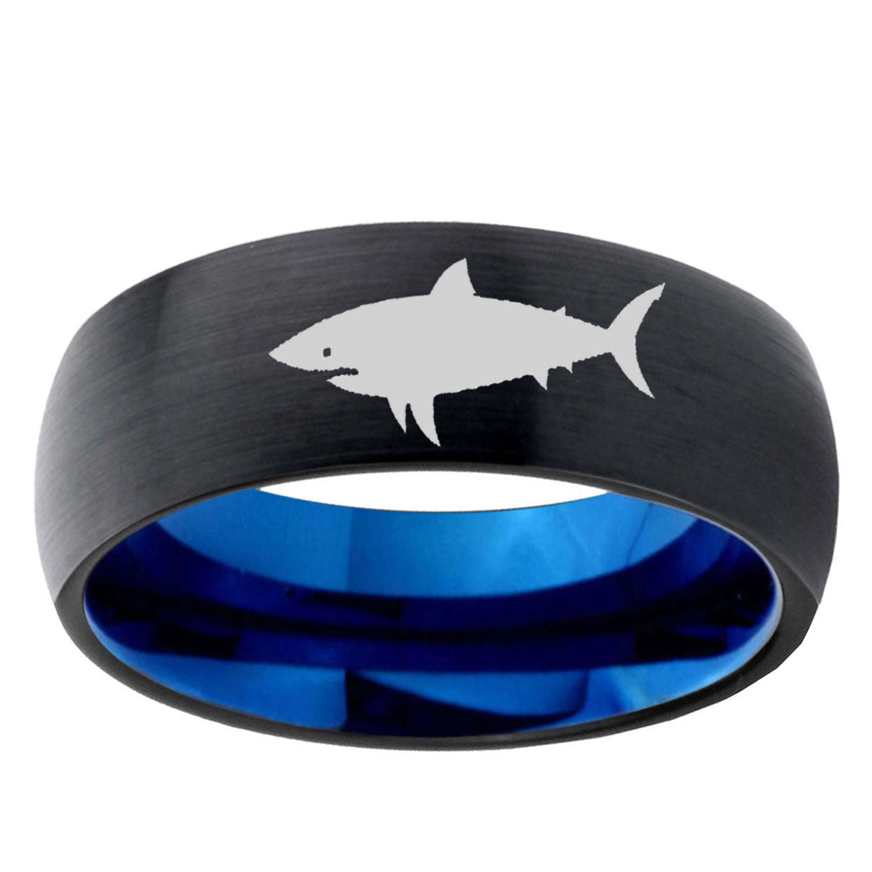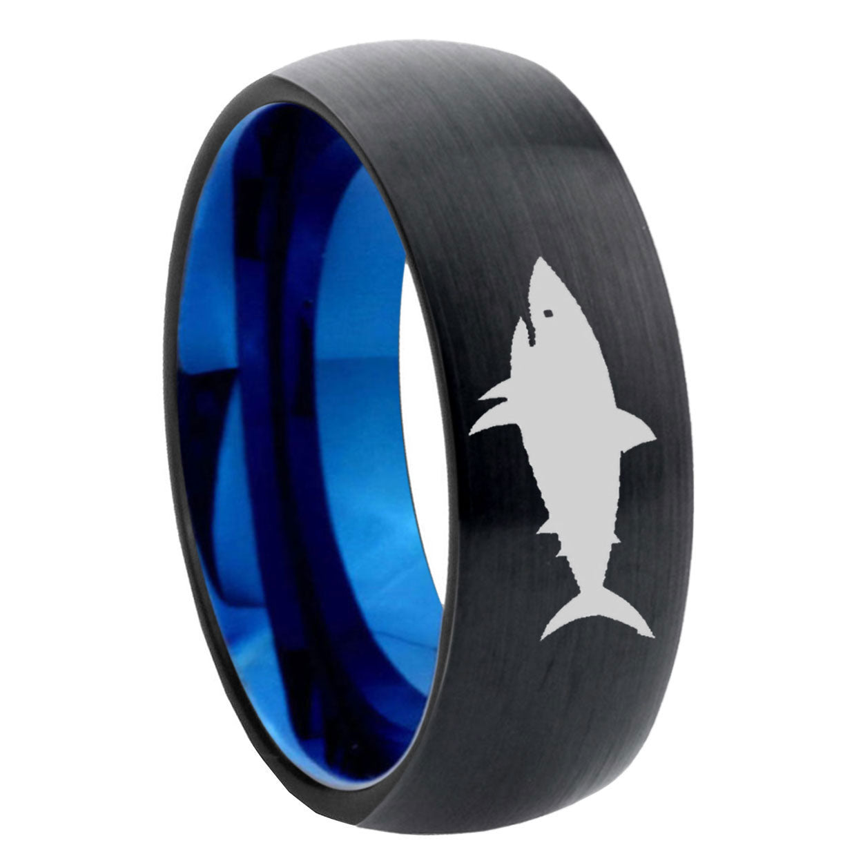 Intruding 5, 8mm Shark Dome Tungsten Carbide Blue Wedding Band Mens . Offer in both 5mm and 8mm band width black and blue plated finished from size 4 to 14