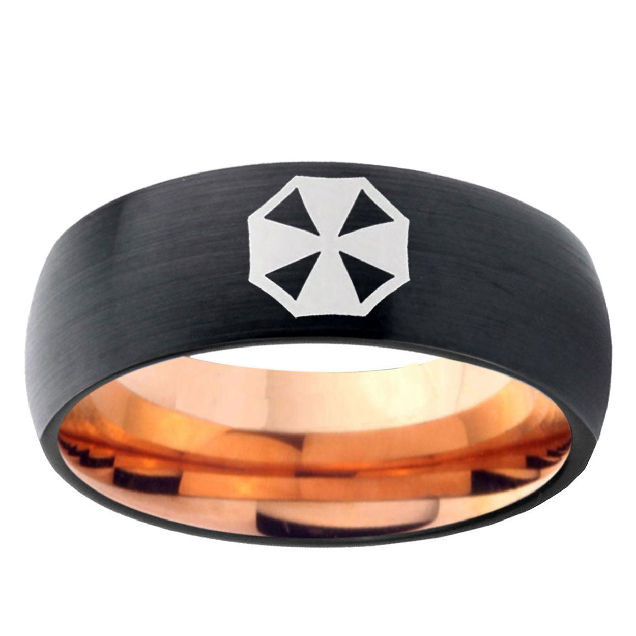 5, 8mm Resident Evil Dome Black And Rose Gold Tungsten Carbide Men's Bands Ring