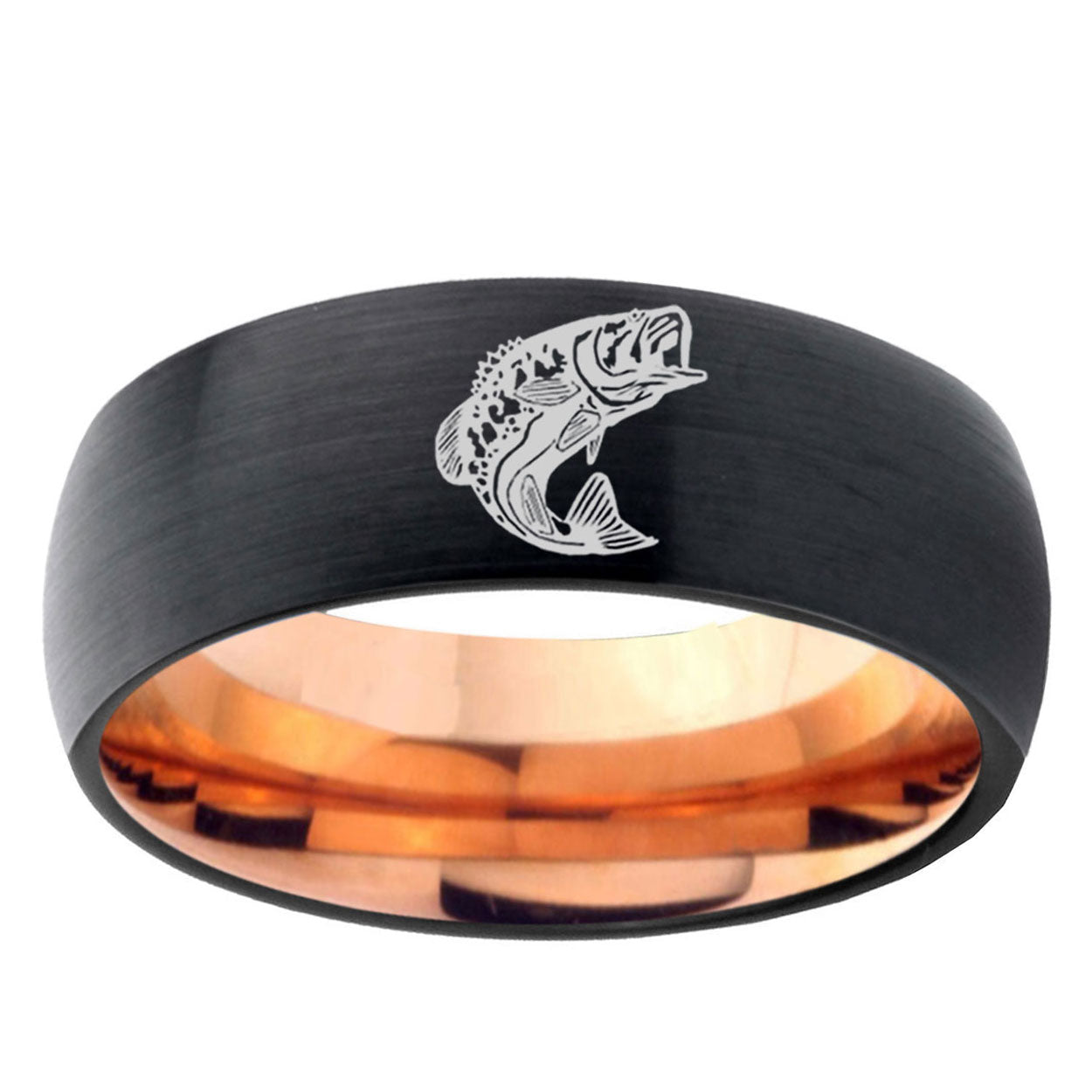Intruding 5, 8mm Fishing Dome Tungsten Carbide Rose Gold Anniversary Ring . Offer in both 5mm and 8mm band width black and rose gold plated finished from size 4 to 14