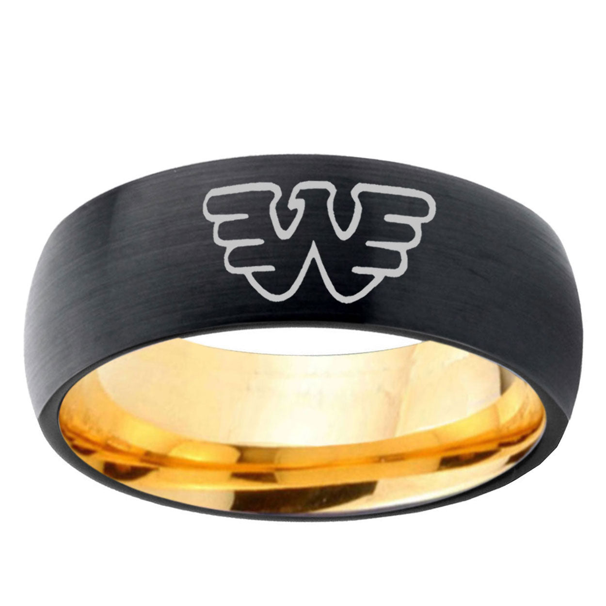 8mm Waylon Jennings Dome Black Gold Tungsten Carbide Wedding Ring