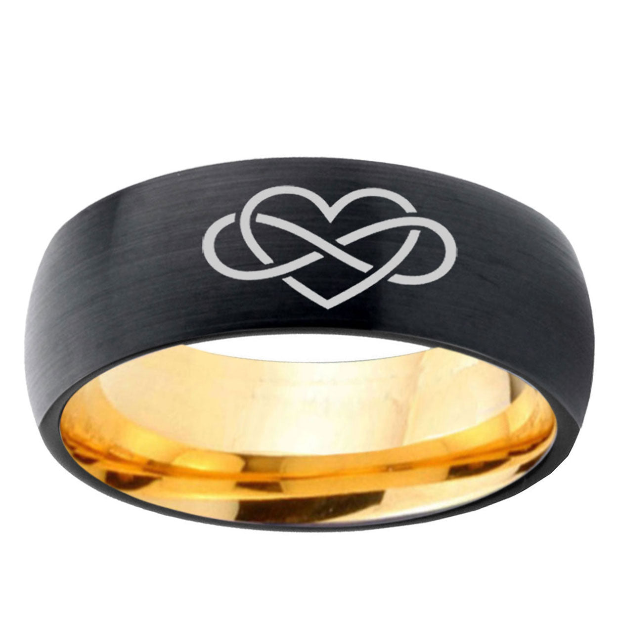 Intruding 8mm Infinity Love Dome Black Gold Tungsten Carbide Wedding Ring . Offer in 8mm band width black and gold plated finished from size 7 to 14