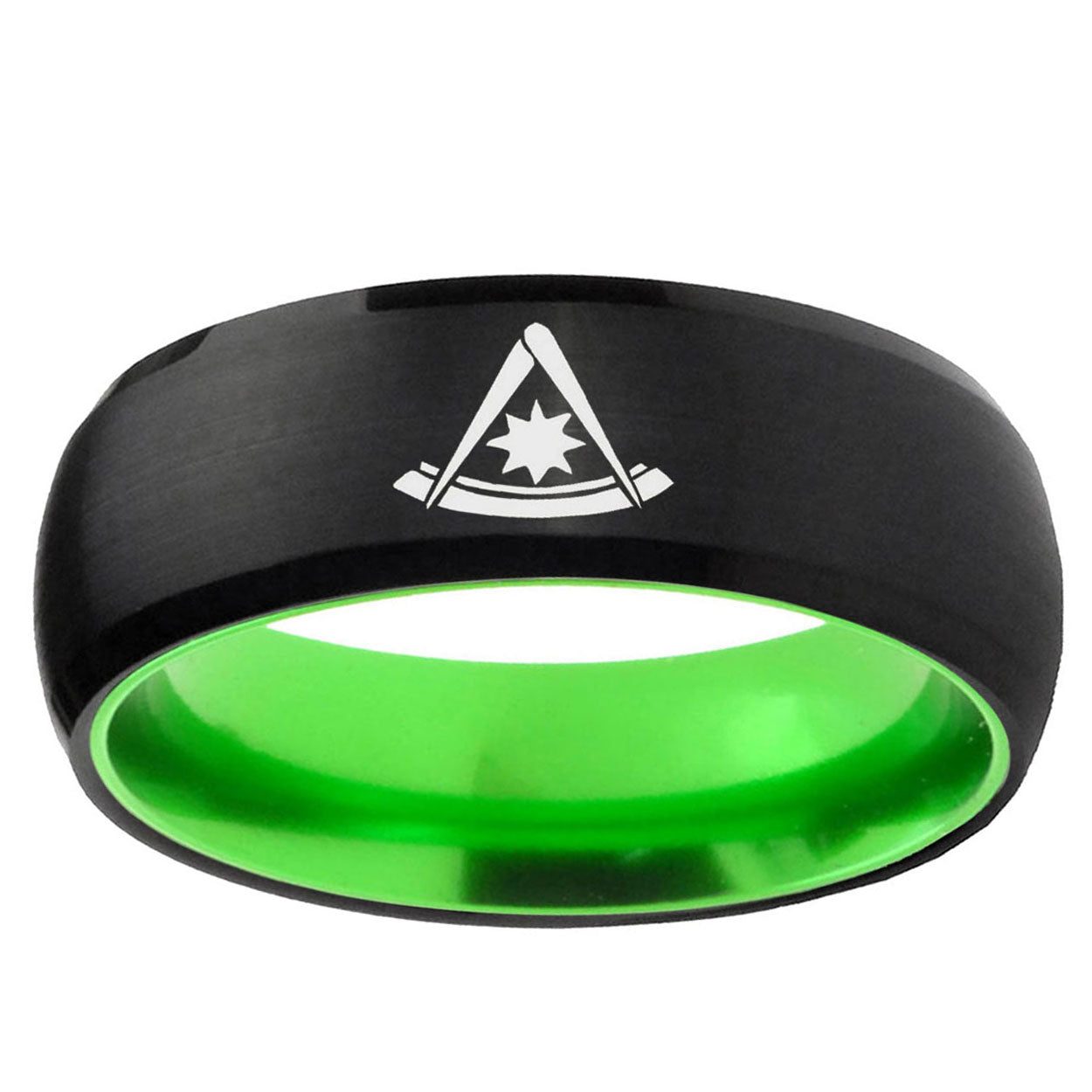 Intruding 8mm Freemason Masonic Dome Black Green Tungsten Rings For Her . Offer in 8mm band width black and green finished from size 7 to 14