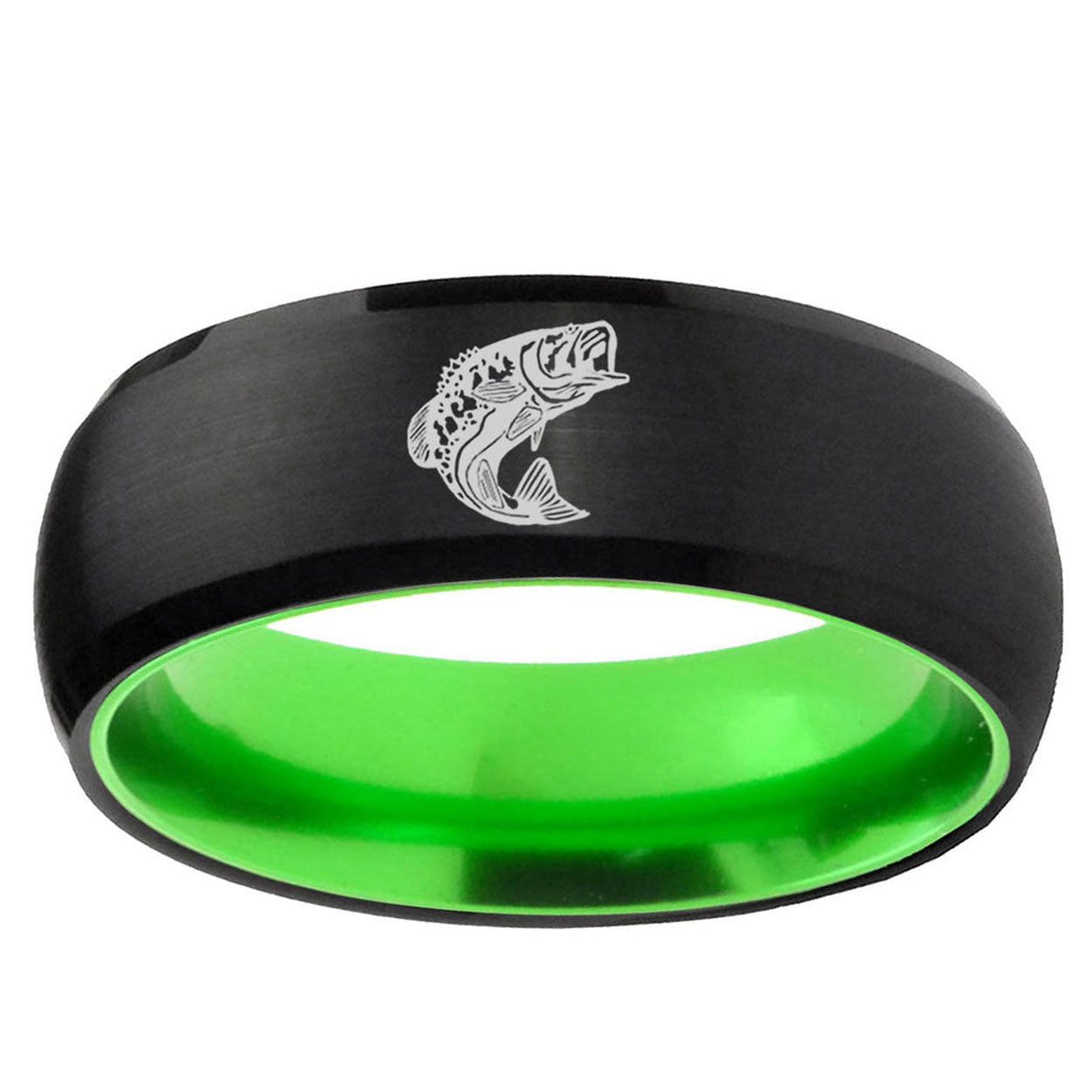 Intruding 8mm Fishing Dome Black And Green Tungsten Carbide Men's Wedding Ring . Offer in men wedding band in 8mm band width Black And Green plated finished from size 7 to 14