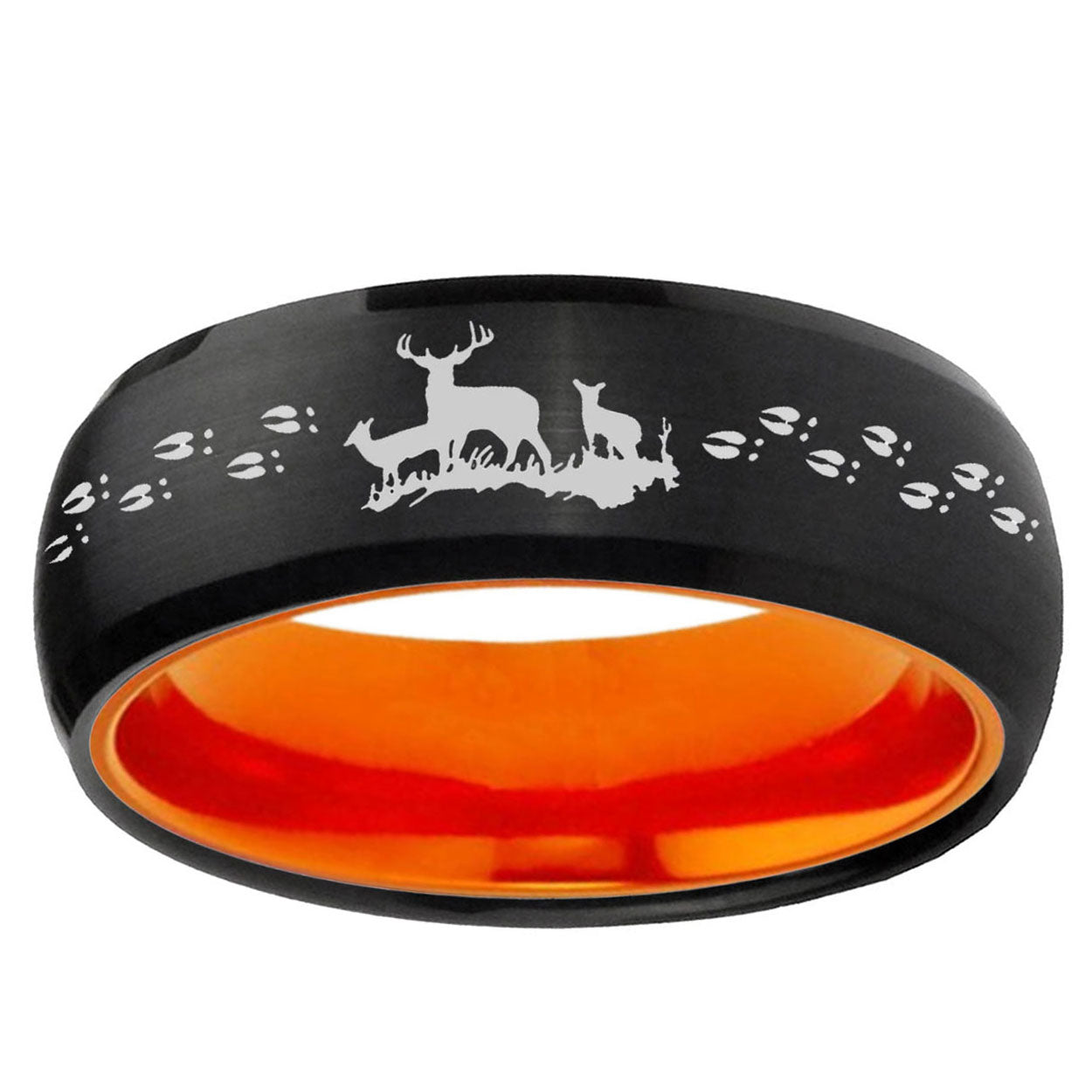 8mm Deer Hunting Dome Black And Orange Tungsten Custom Rings
