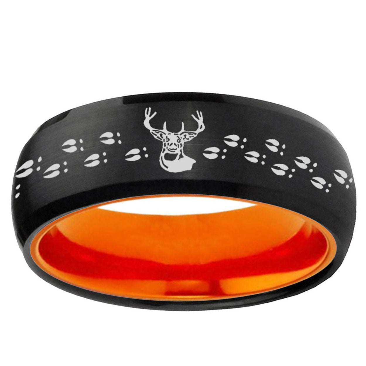 Intruding 8mm Deer Antler Dome Black And Orange Tungsten Carbide Men's Wedding Ring . Offer in men wedding band in 8mm band width Black And Orange plated finished from size 7 to 14