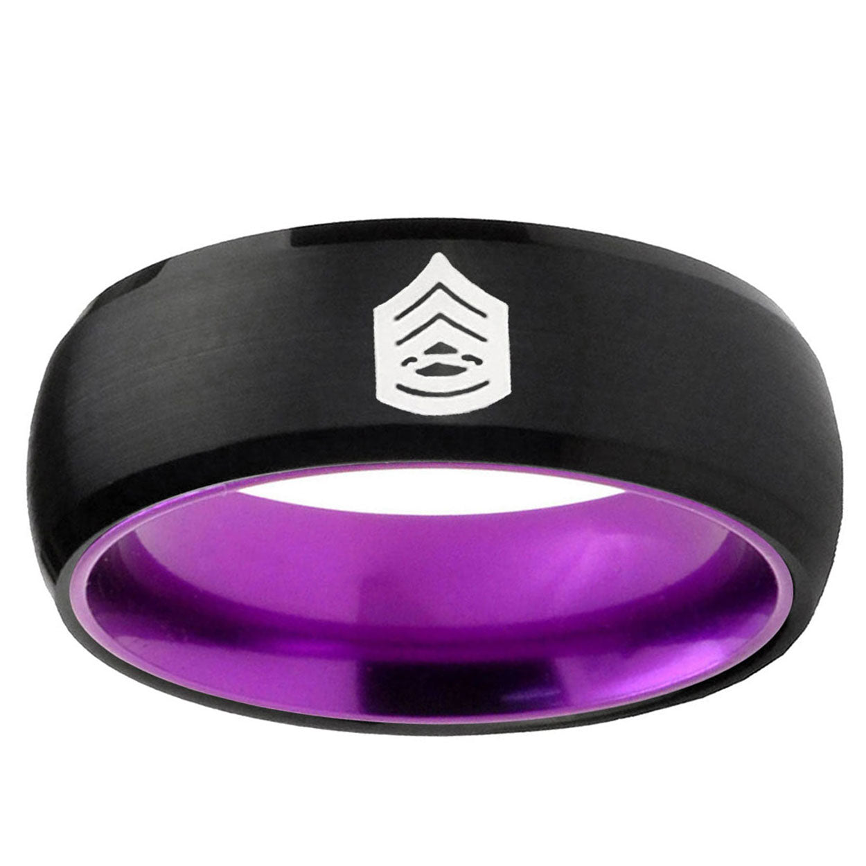8mm Army Sergeant Major Dome Black And Purple Tungsten Custom Men's Ring