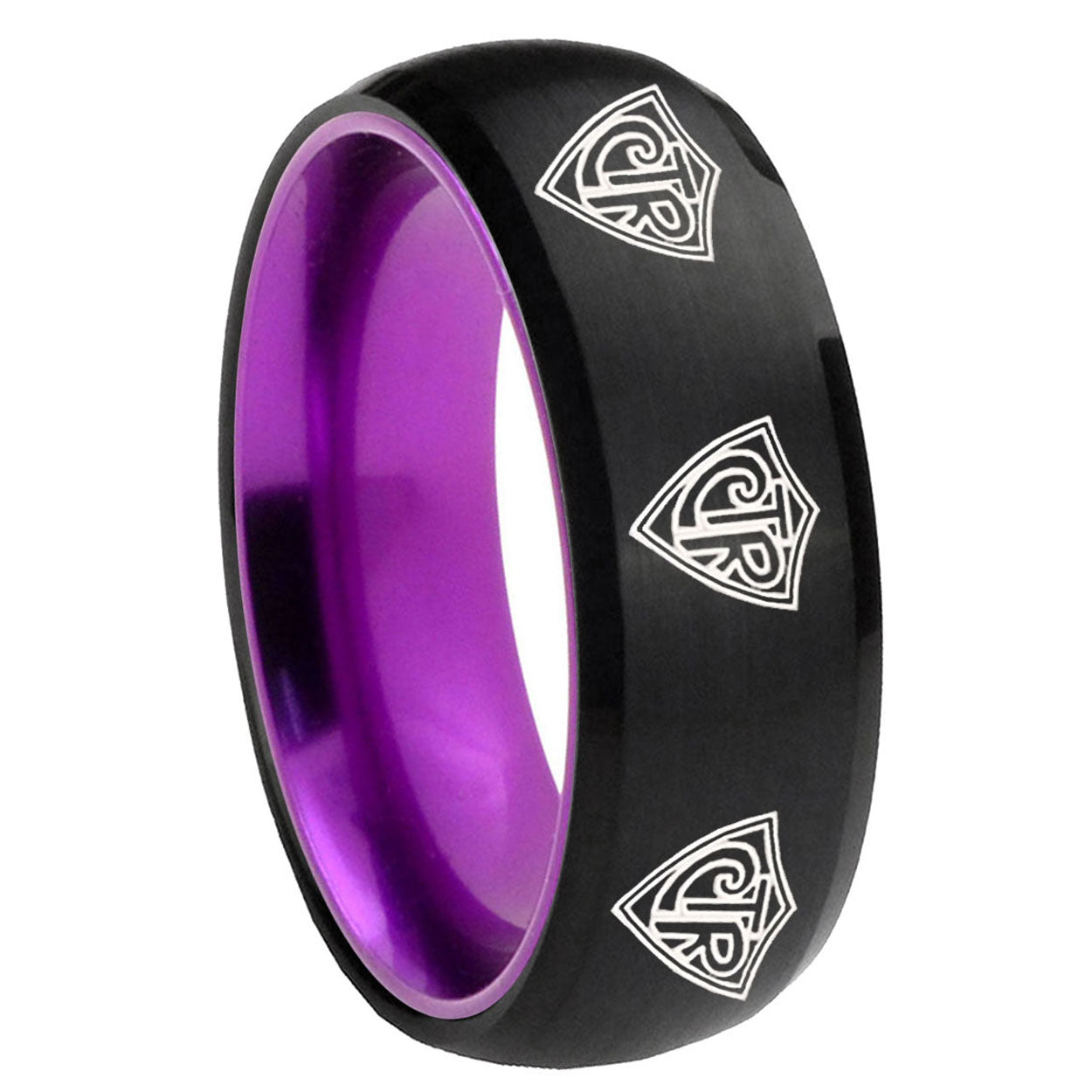 Intruding 8mm Multiple CTR Dome Black And Purple Tungsten Carbide Men's Promise Rings . Offer in men wedding band in 8mm band width Black And Purple plated finished from size 7 to 14