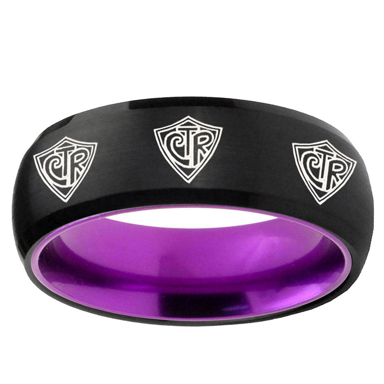 8mm Multiple CTR Dome Black And Purple Tungsten Carbide Men's Promise Rings