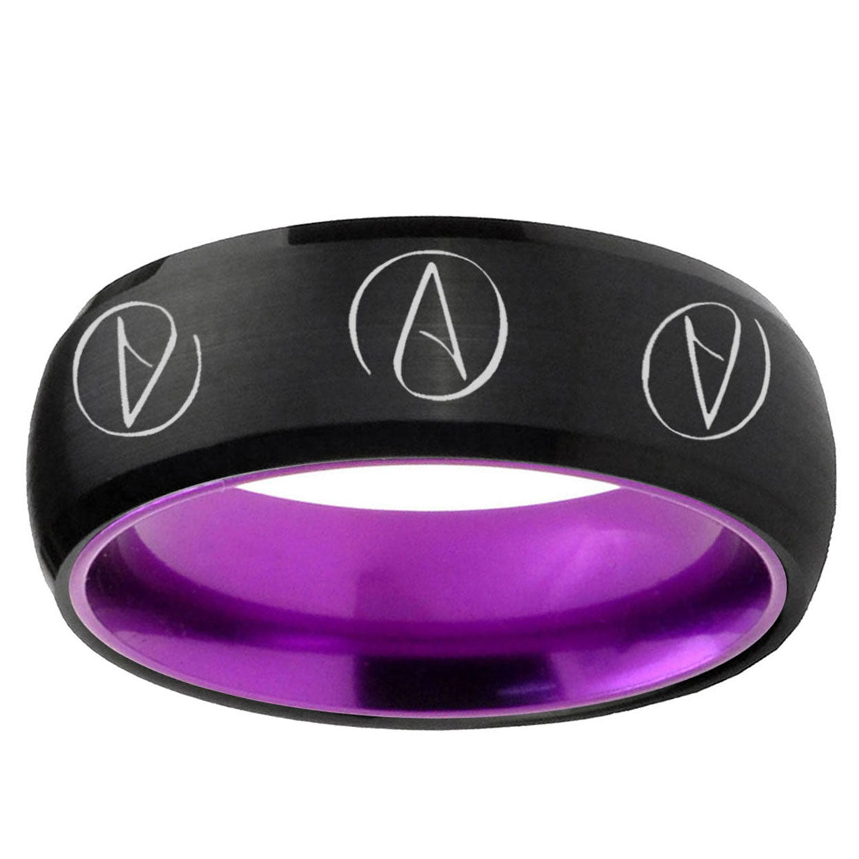 Intruding 8mm Atheist Design Dome Black And Purple Tungsten Engagement Ring . Offer in men wedding band in 8mm band width Black And Purple plated finished from size 7 to 14