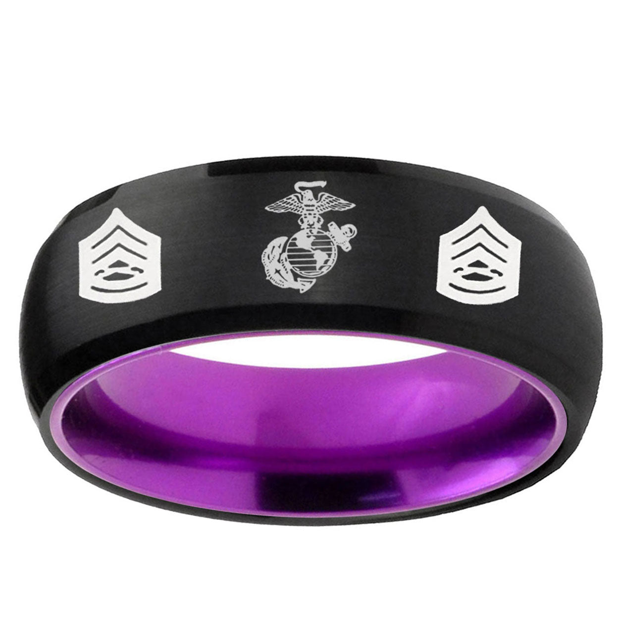 8mm Marine Army Sergeant Dome Black And Purple Tungsten Carbide Men's Bands Ring
