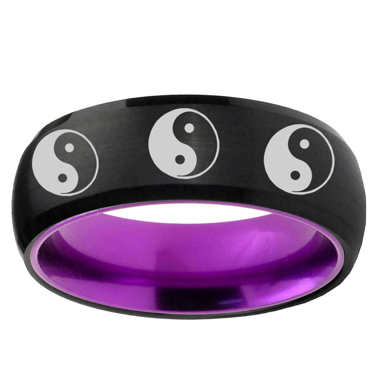 8mm Multiple Yin Yang Dome Black And Purple Tungsten Carbide Promise Ring