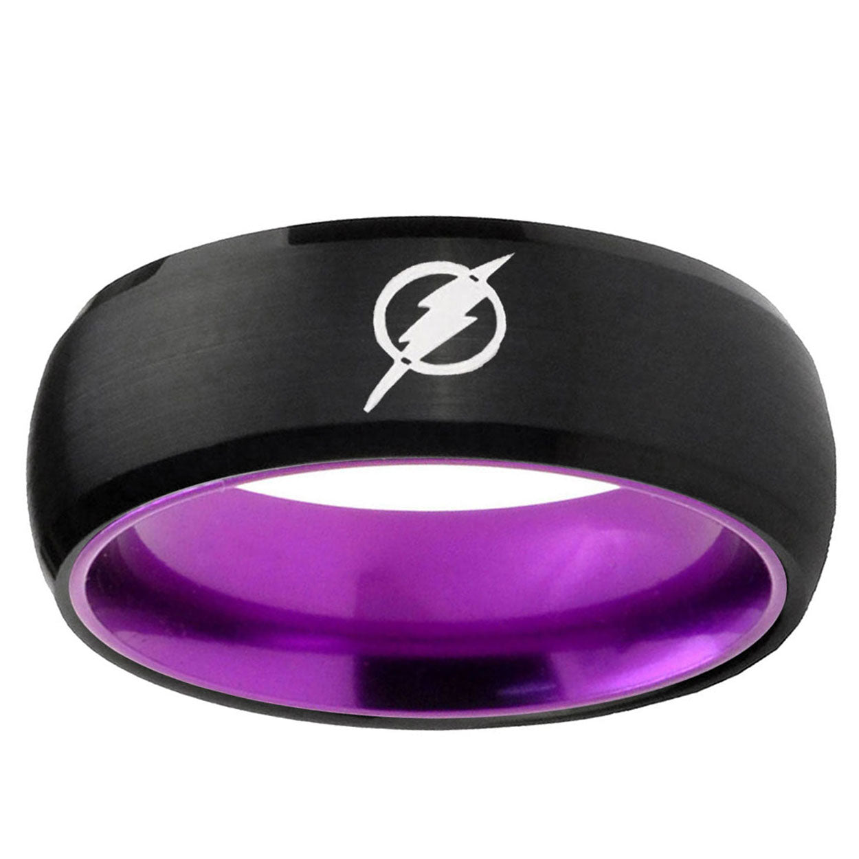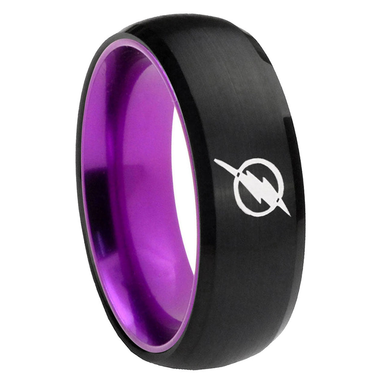 Intruding 8mm Flash Dome Black Purple Coolest Mens Wedding Bands . Offer in 8mm band width black and purple finished from size 7 to 14