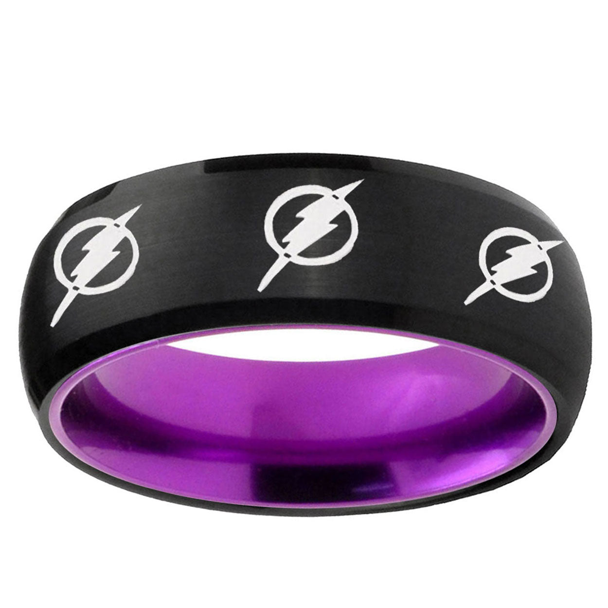 Intruding 8mm Multiple Flash Dome Black And Purple Mens Wide Wedding Bands . Offer in men wedding band in 8mm band width brushed Black And Purple plated finished from size 7 to 14