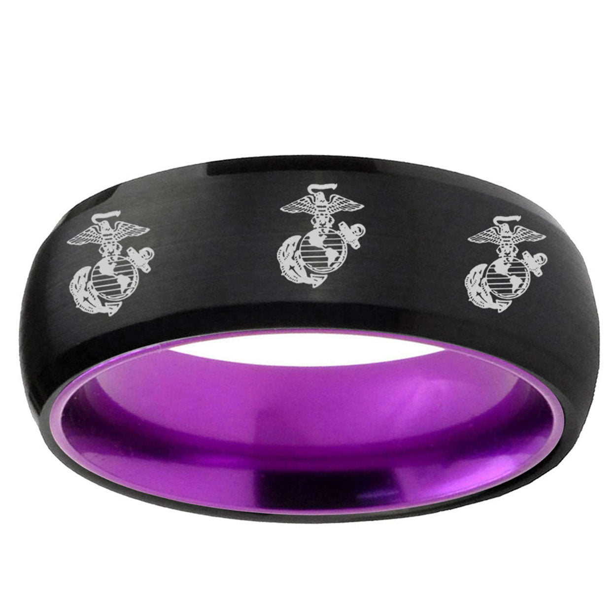 Intruding 8mm Multiple Marine Dome Black And Purple Tungsten Wedding Engagement Ring . Offer in men wedding band in 8mm band width Black And Purple plated finished from size 7 to 14