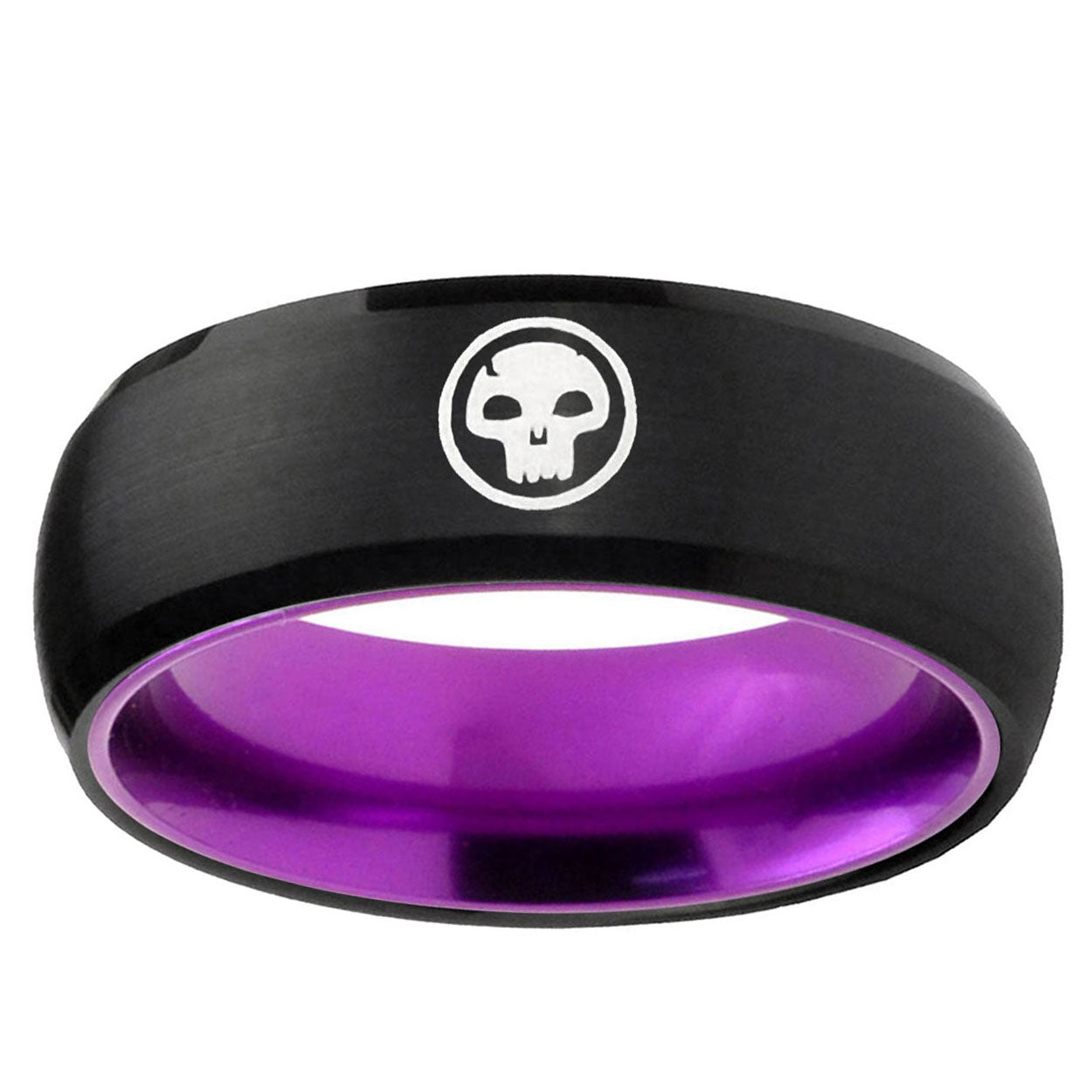 Intruding 8mm Skull Dome Black And Purple Tungsten Carbide Wedding Engraving Ring . Offer in men wedding band in 8mm band width Black And Purple plated finished from size 7 to 14