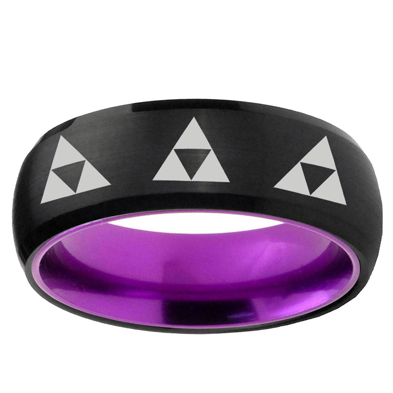 8mm Multiple Zelda Triforce Dome Black And Purple Tungsten Custom Ring for Men