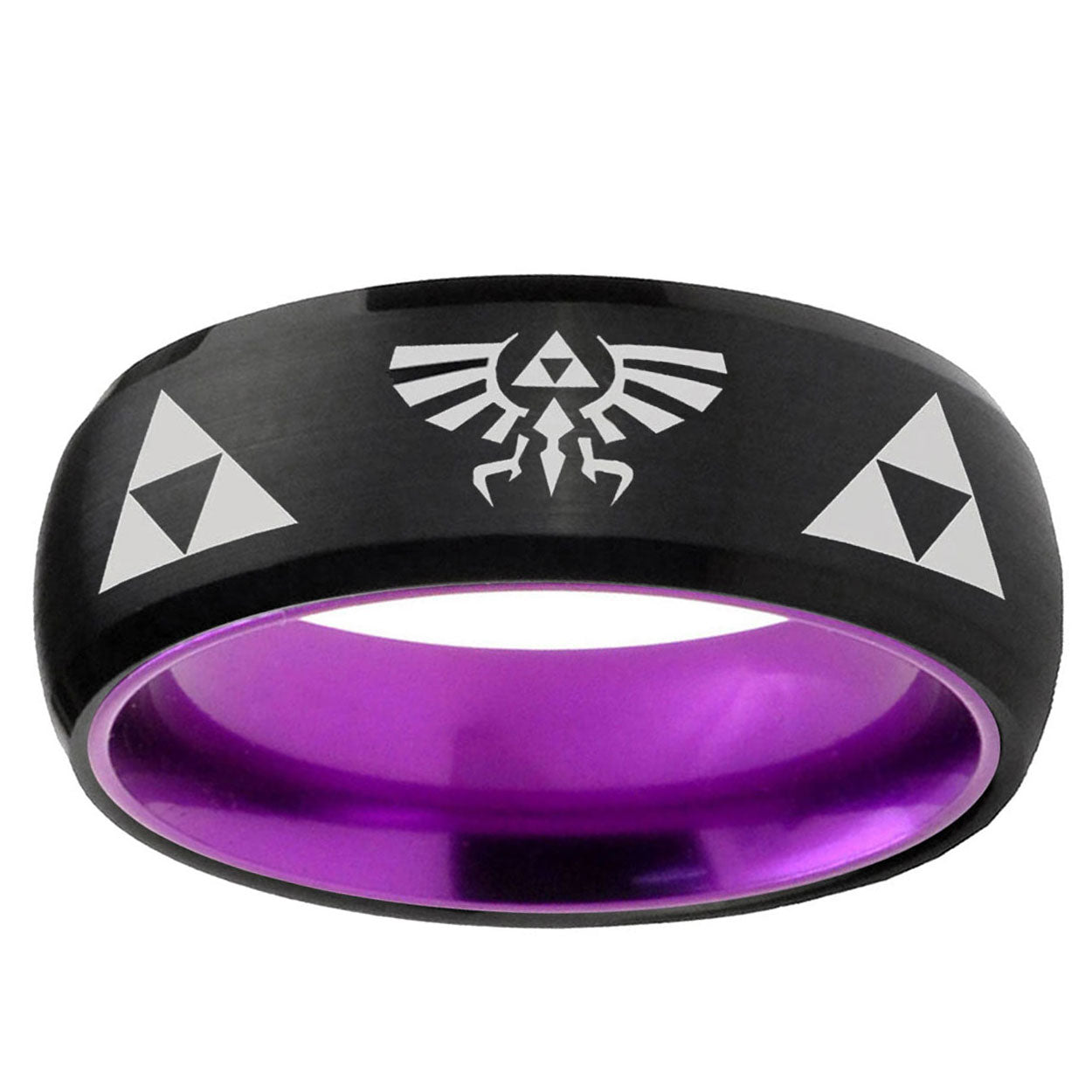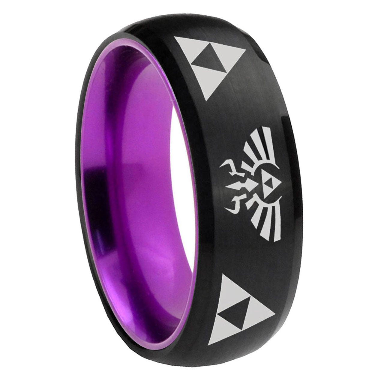 Intruding 8mm Legend of Zelda Dome Black And Purple Tungsten Carbide Men's Wedding Ring . Offer in men wedding band in 8mm band width Black And Purple plated finished from size 7 to 14