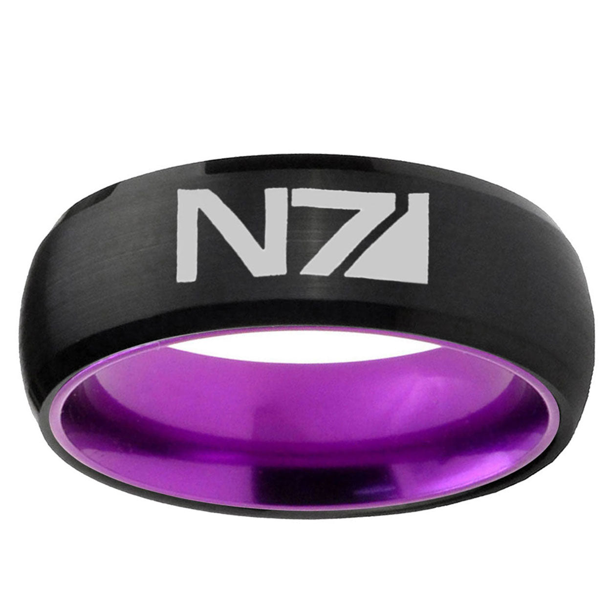 8mm N7 Design Dome Black And Purple Tungsten Carbide Wedding Ring