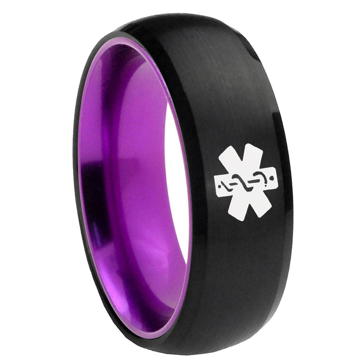 Intruding 8mm Medical Alert Dome Black Purple Coolest Mens Wedding Bands . Offer in 8mm band width black and purple finished from size 7 to 14