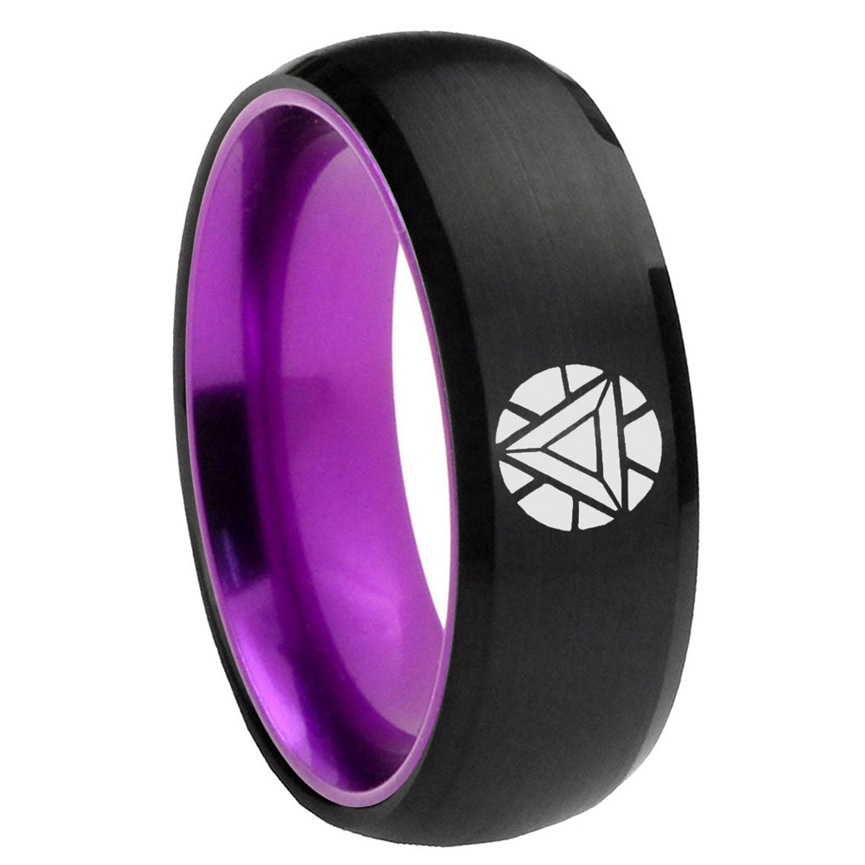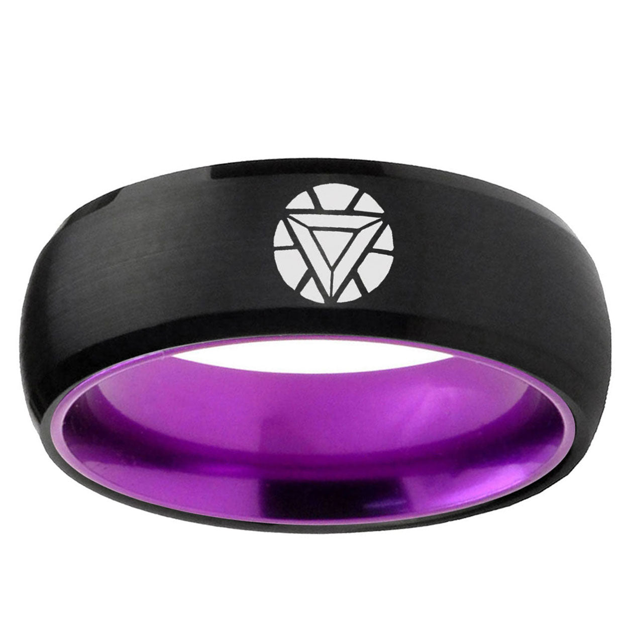 Intruding 8mm Iron Man Art Reactor Dome Black Purple Wedding Ring For Man . Offer in 8mm band width black and purple finished from size 7 to 14