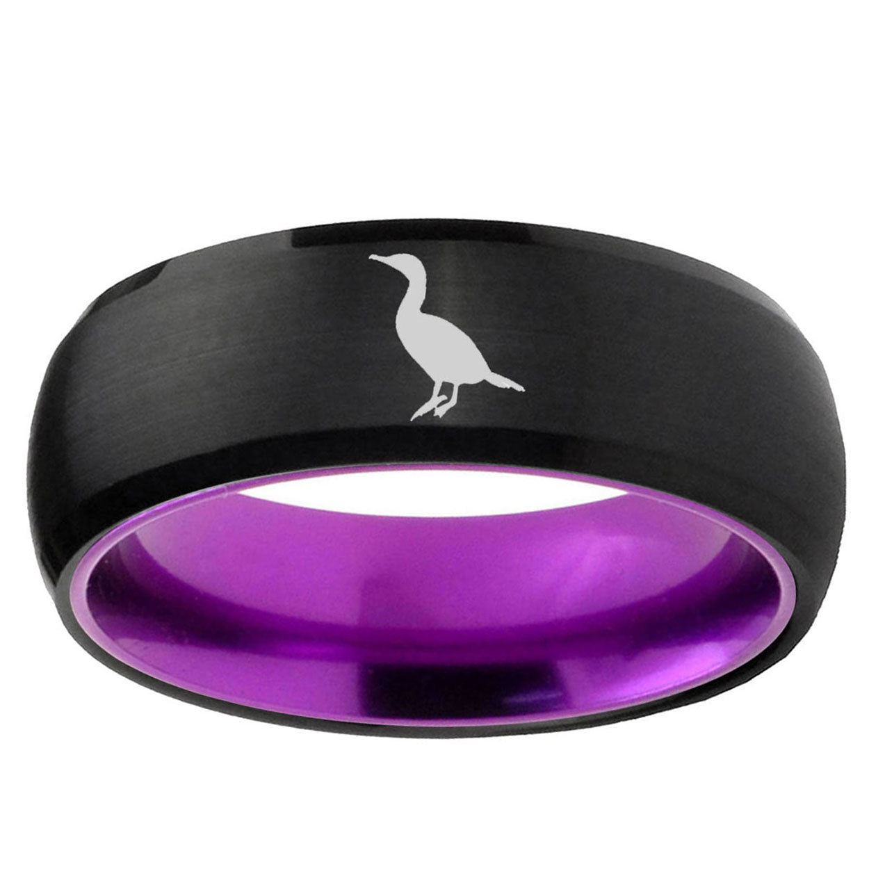8mm Cormorant Dome Black And Purple Tungsten Wedding Band Ring