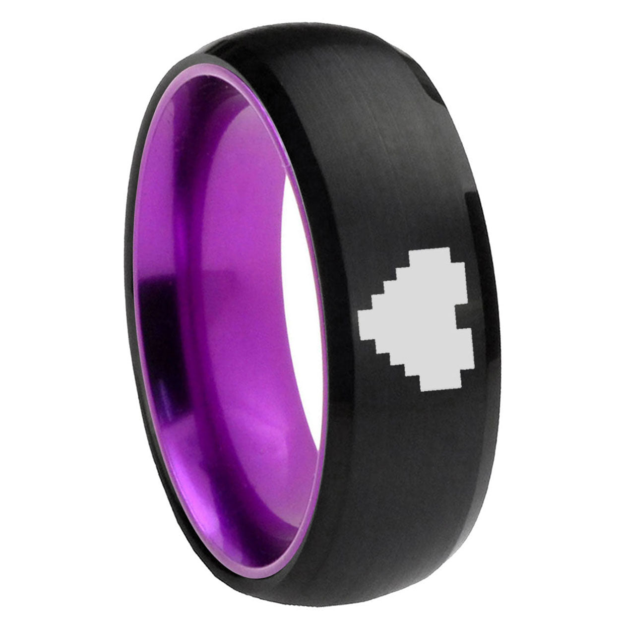 8mm Dome Black And Purple Zelda Heart Tungsten Carbide Laser Engraved Ring