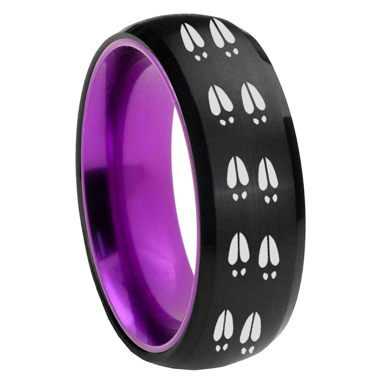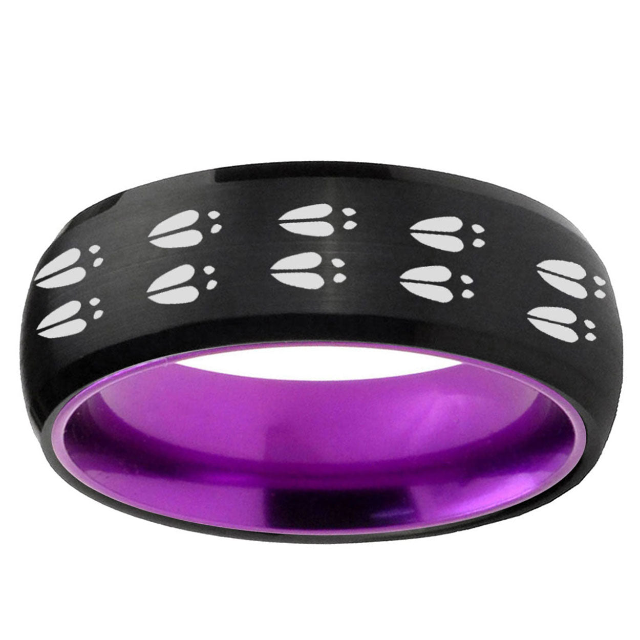 Intruding 8mm Deer Tracks Dome Black And Purple Tungsten Carbide Men's Wedding Band . Offer in men wedding band in 8mm band width Black And Purple plated finished from size 7 to 14