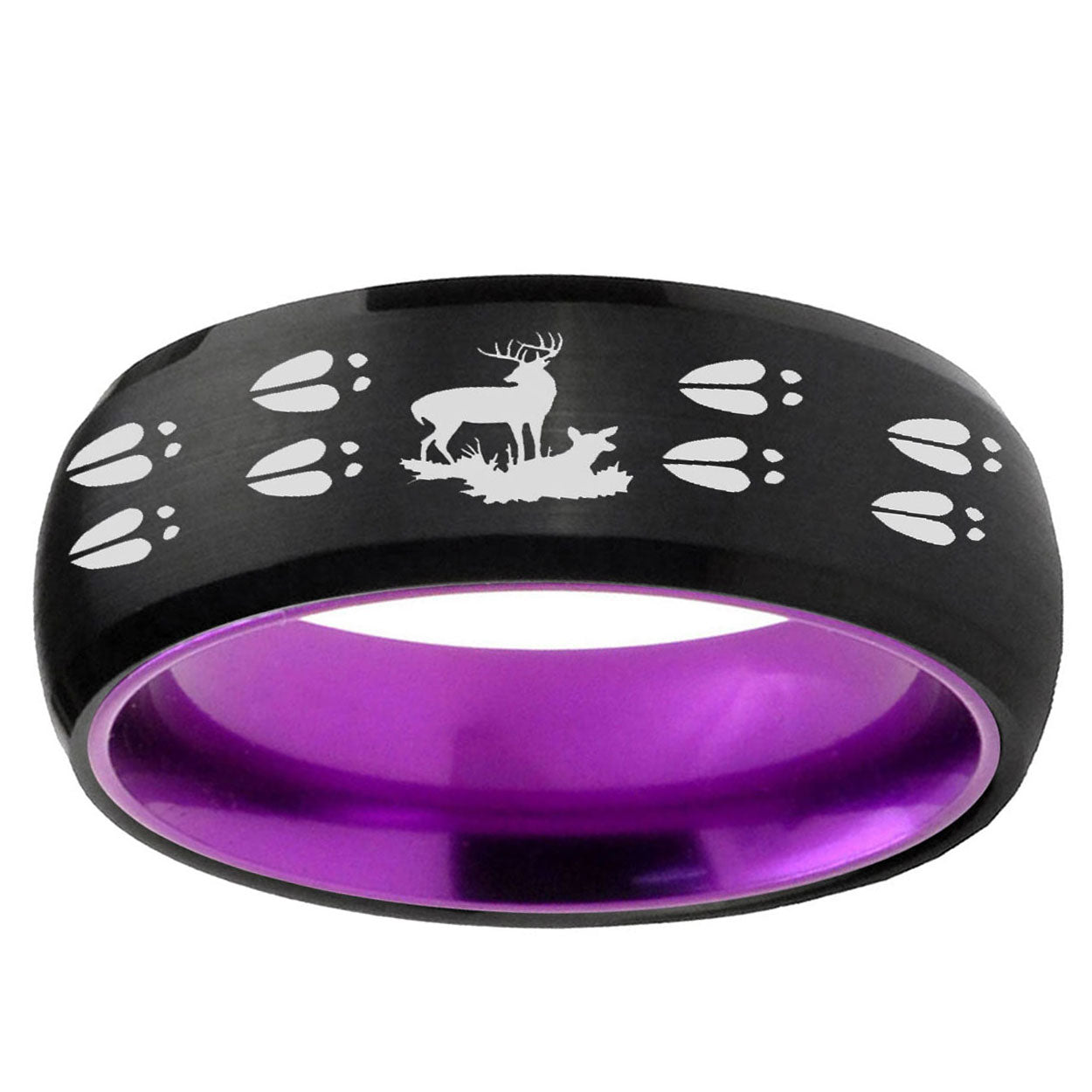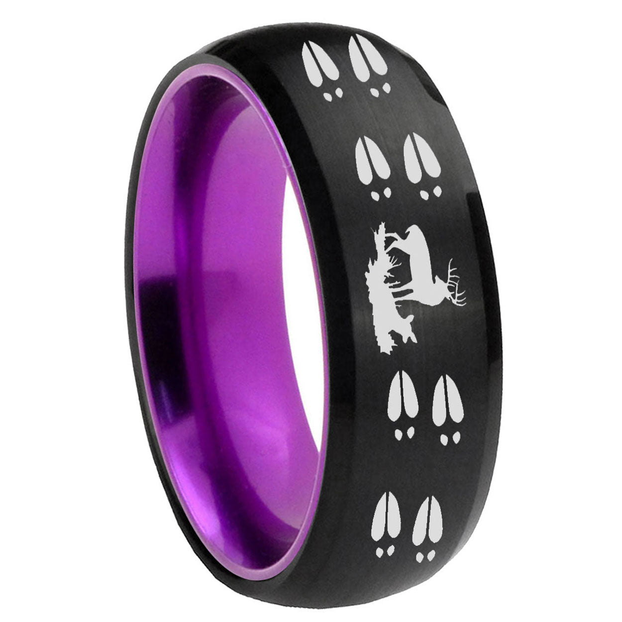 8mm Deer Hunting Tracks Dome Black And Purple Tungsten Men's Wedding Ring