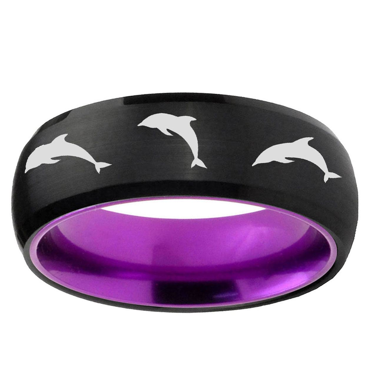 8mm Dolphins Dome Black And Purple Tungsten Carbide Personalized Ring