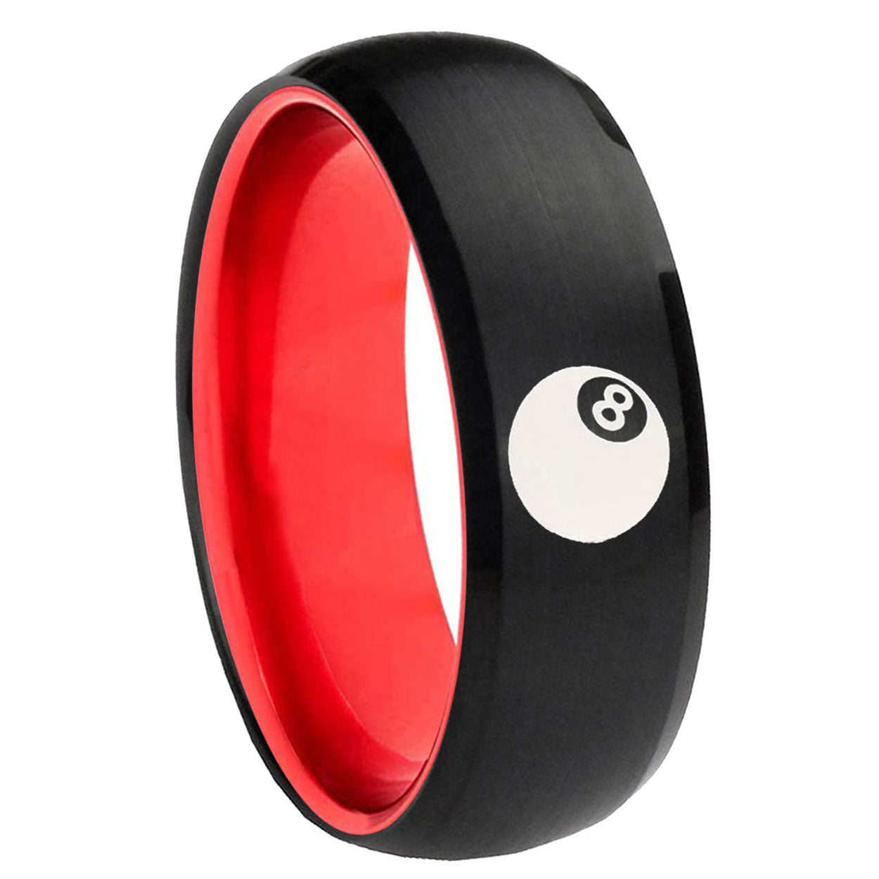 8mm 8 Ball Dome Black And Red Tungsten Carbide Wedding Engraving Ring