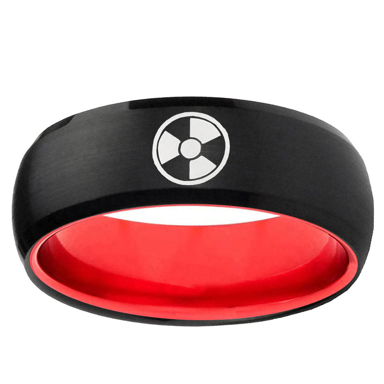 8mm Radiation Dome Black And Red Tungsten Carbide Men's Ring Personalized
