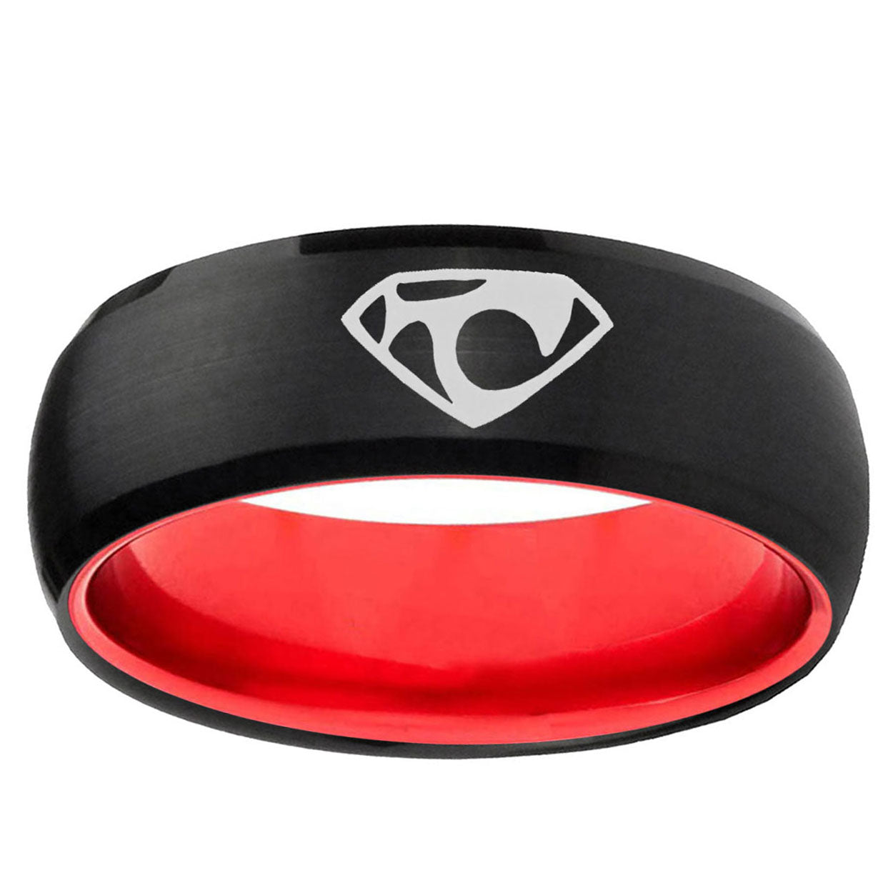Intruding 8mm House of Van Dome Black And Red Tungsten Wedding Engagement Ring . Offer in men wedding band in 8mm band width Black And Red plated finished from size 7 to 14