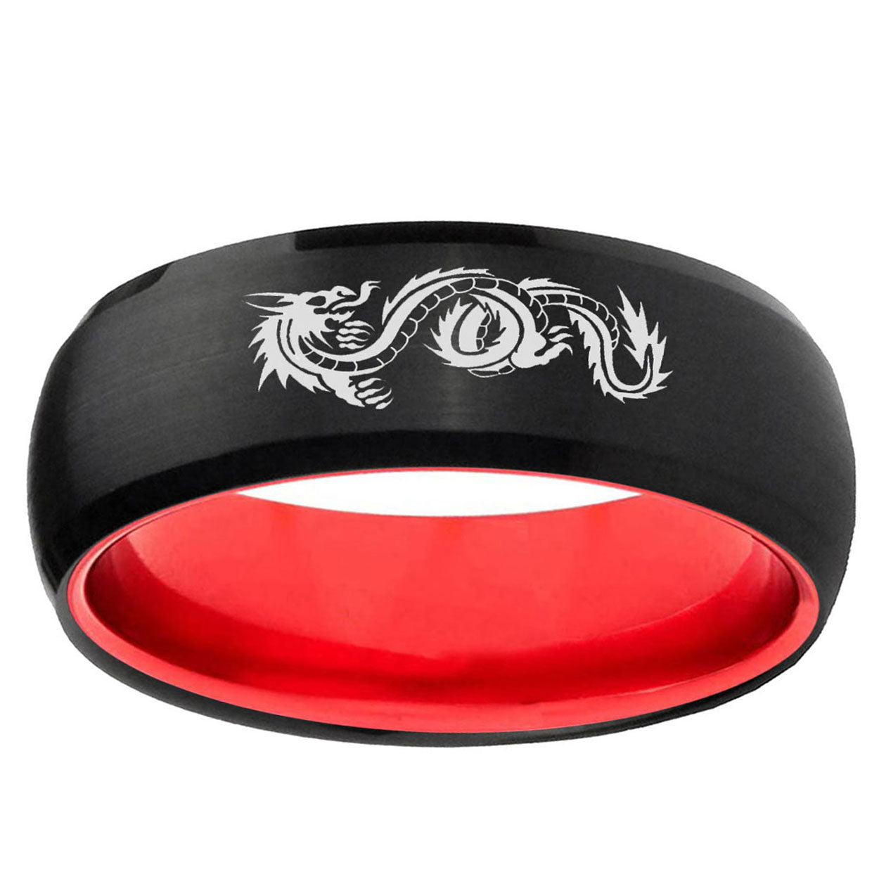8mm Dragon Dome Black And Red Tungsten Carbide Wedding Engraving Ring