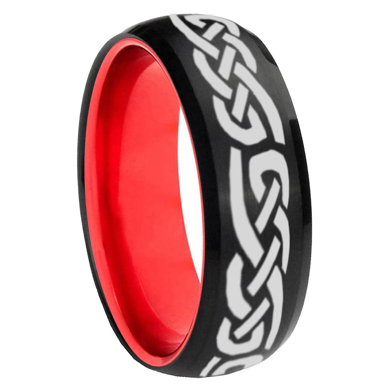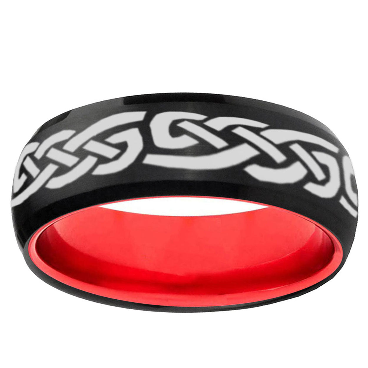 8mm Celtic Knot Infinity Love Dome Black And Red Tungsten Engraved Ring