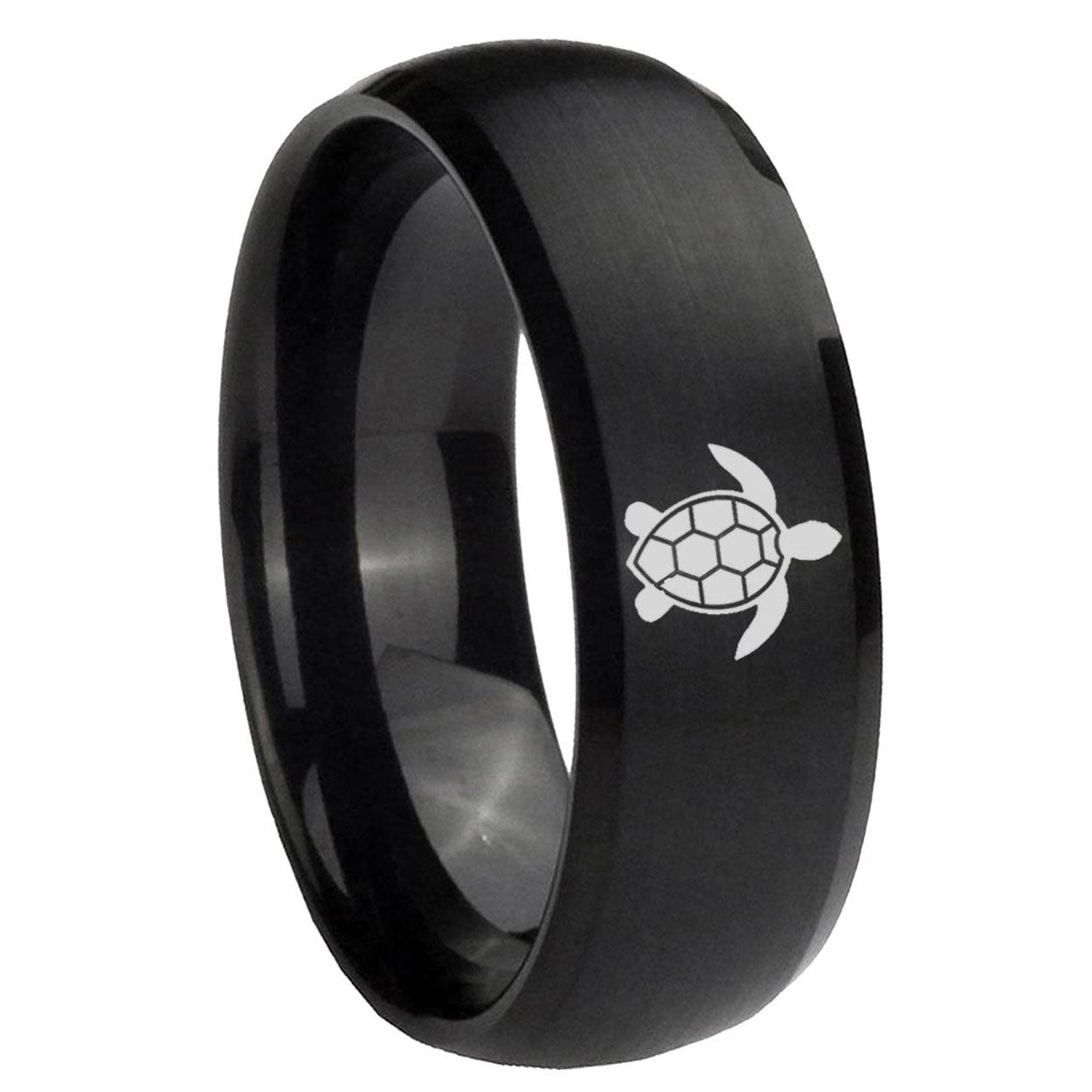 Intruding 5, 8mm Sea Turtle Dome Matte Black Silver Wedding Bands For Him . Offer in both 5mm and 8mm band width brushed black plated finished from size 4 to 14