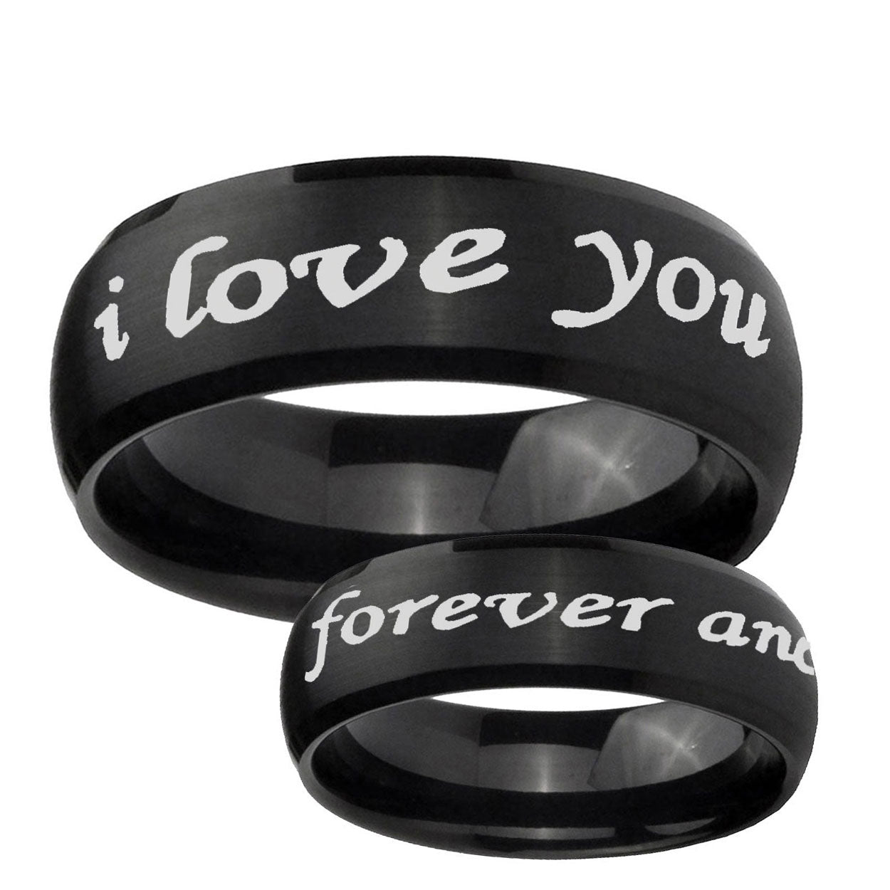 Intruding 5, 8mm I Love You Forever and ever Dome Brush Black Tungsten Mens Ring Personalized . Offer in both 5mm and 8mm band width brush black plated finished from size 4 to 14