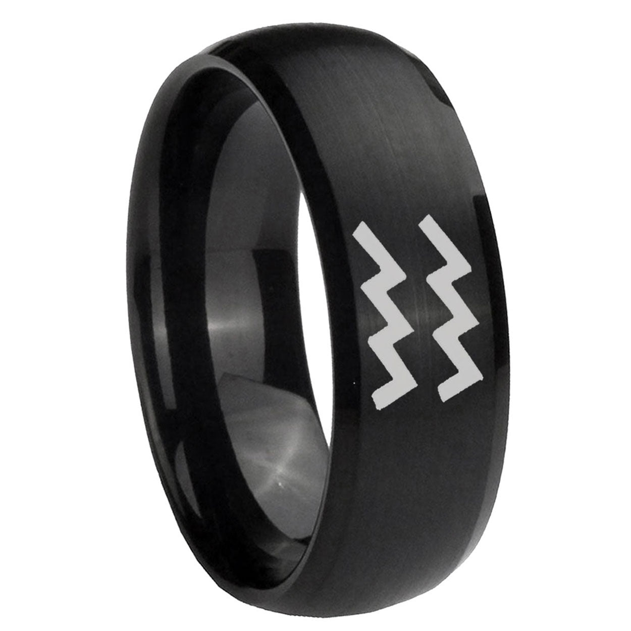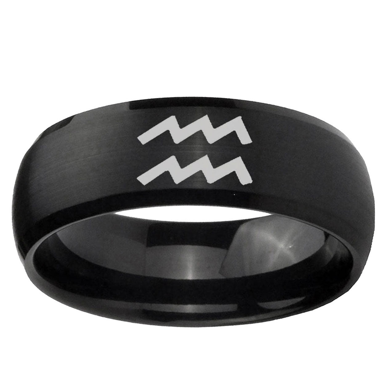 Intruding 5, 8mm Aquarius Horoscope Dome Brush Black Tungsten Carbide Wedding Bands Ring . Offer in both 5mm and 8mm band width brush black plated finished from size 4 to 14