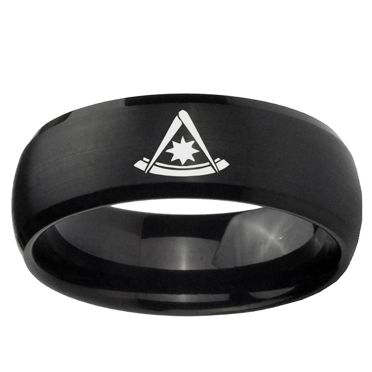 Intruding 5, 8mm Pester Master Masonic Dome Brush Black Tungsten Wedding Engagement Ring . Offer in both 5mm and 8mm band width brush black plated finished from size 4 to 14