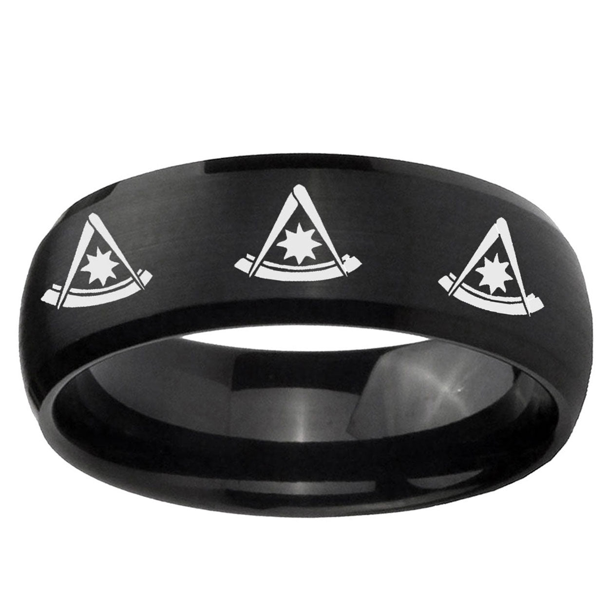 Intruding 5, 8mm Multiple Pester Master Masonic Dome Brush Black Tungsten Carbide Bands Ring . Offer in both 5mm and 8mm band width brush black plated finished from size 4 to 14