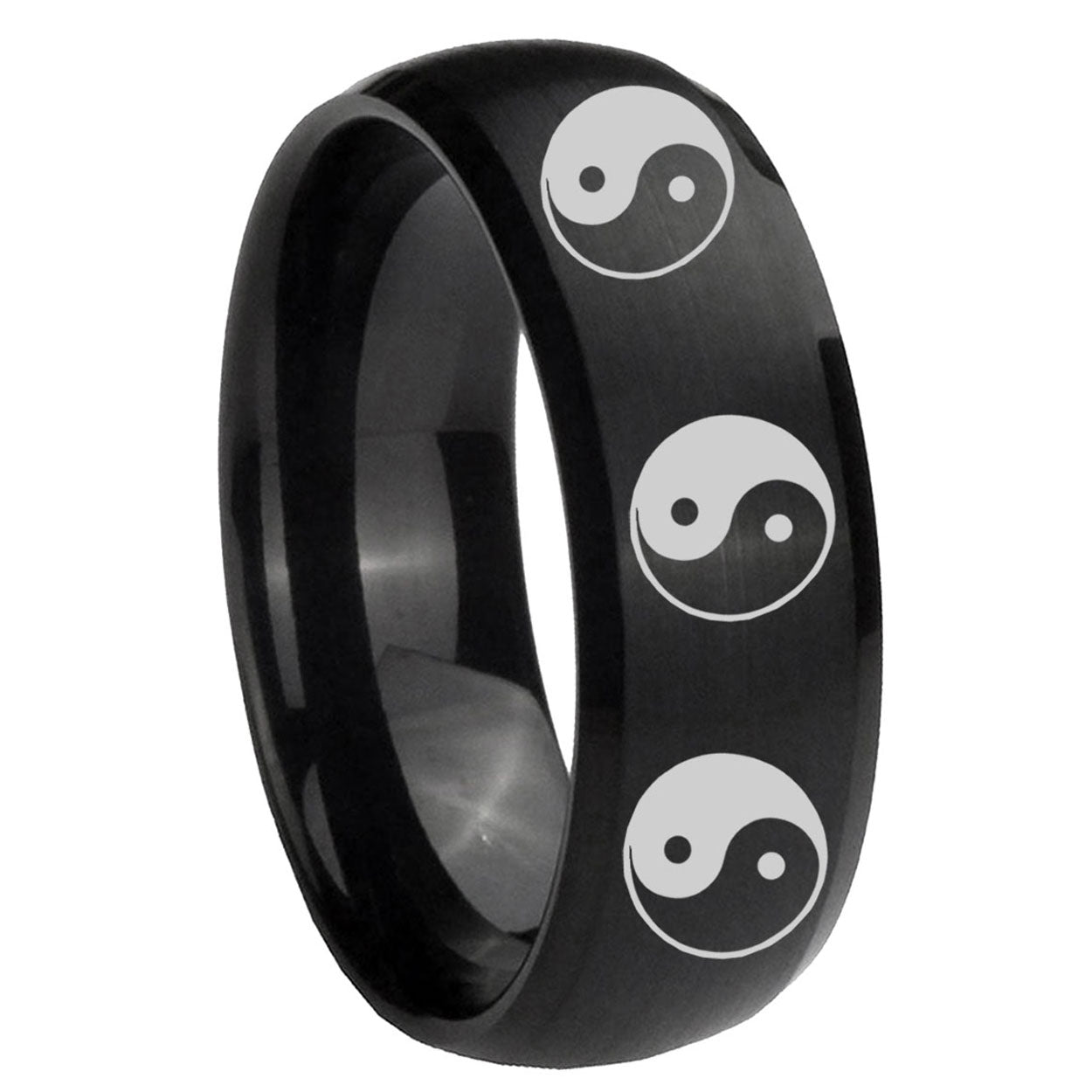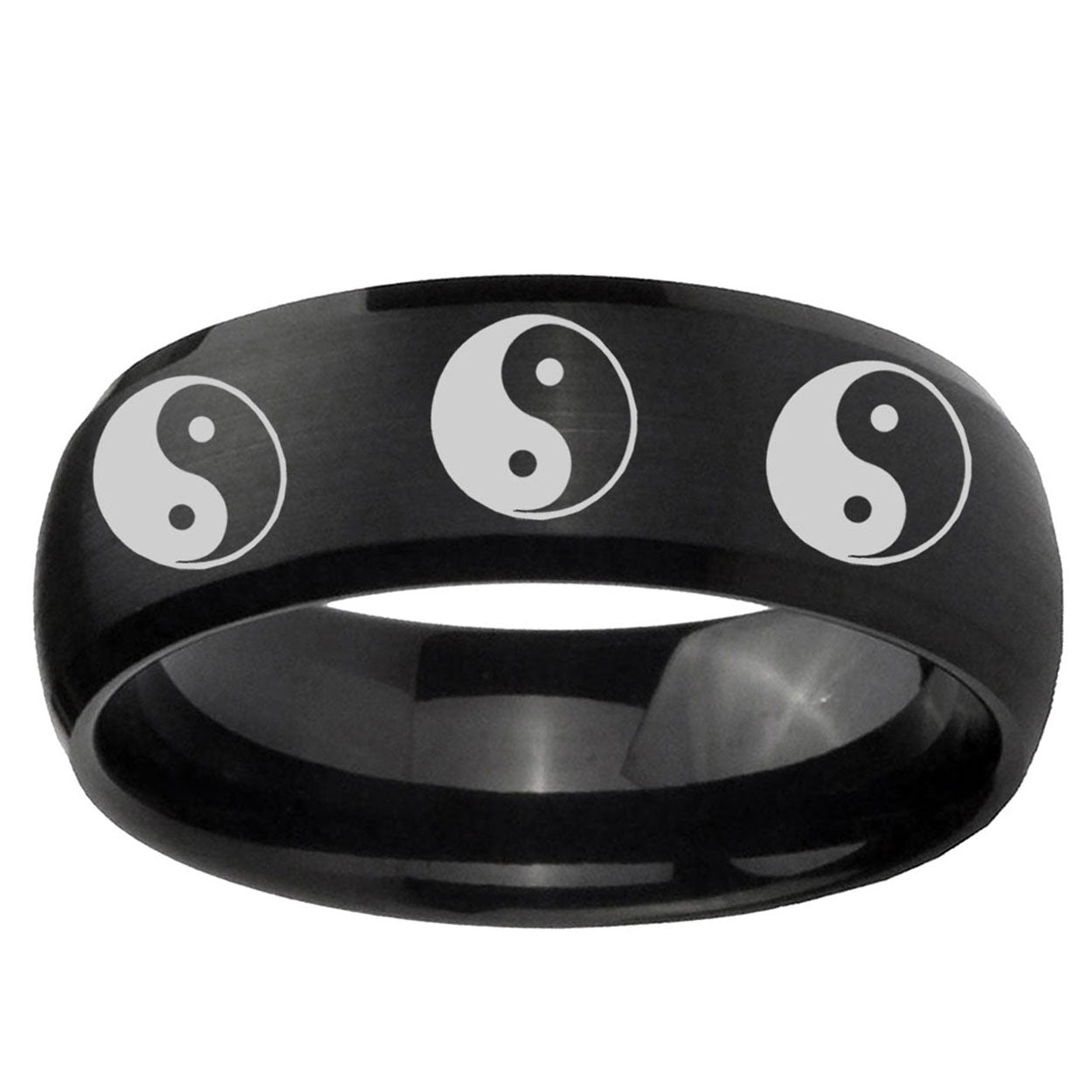 Intruding 5, 8mm Multiple Yin Yang Dome Brush Black Tungsten Carbide Men's Band Ring . Offer in both 5mm and 8mm band width brush black plated finished from size 4 to 14