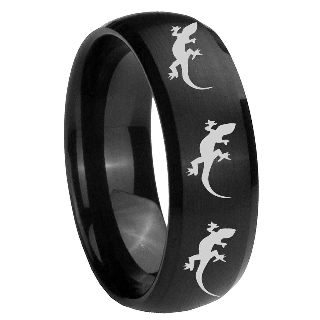 5, 8mm Multiple Lizard Dome Brush Black Tungsten Carbide Personalized Ring
