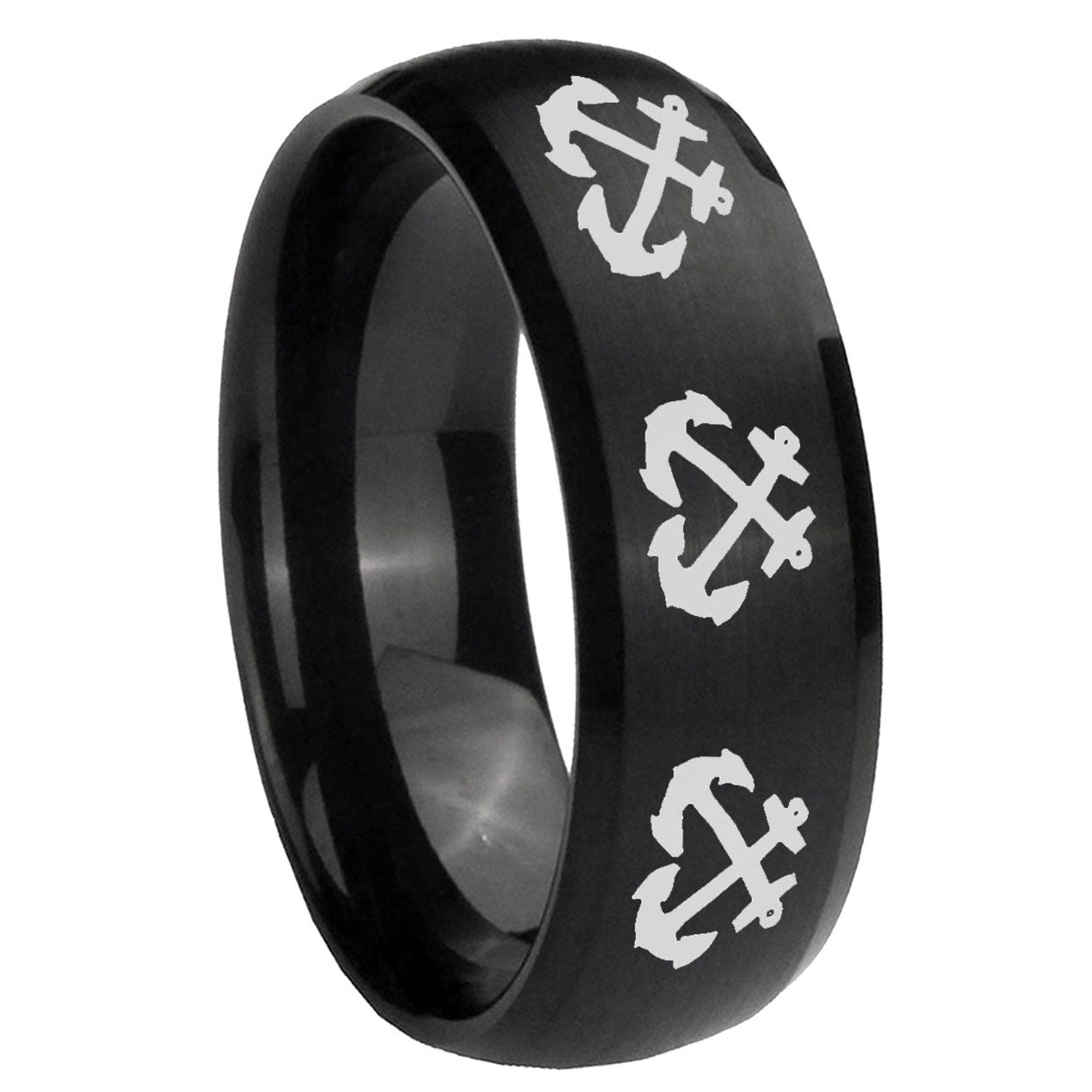 Intruding 5, 8mm Multiple Anchor Dome Brush Black Tungsten Carbide Mens Wedding Band . Offer in both 5mm and 8mm band width brush black plated finished from size 4 to 14