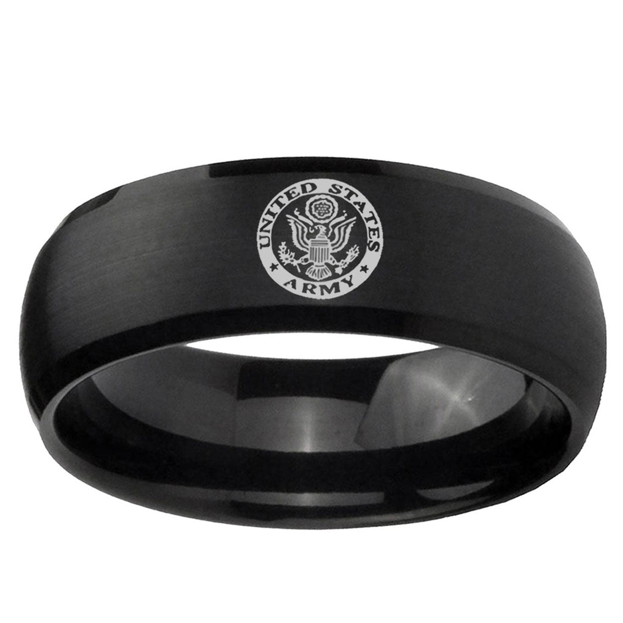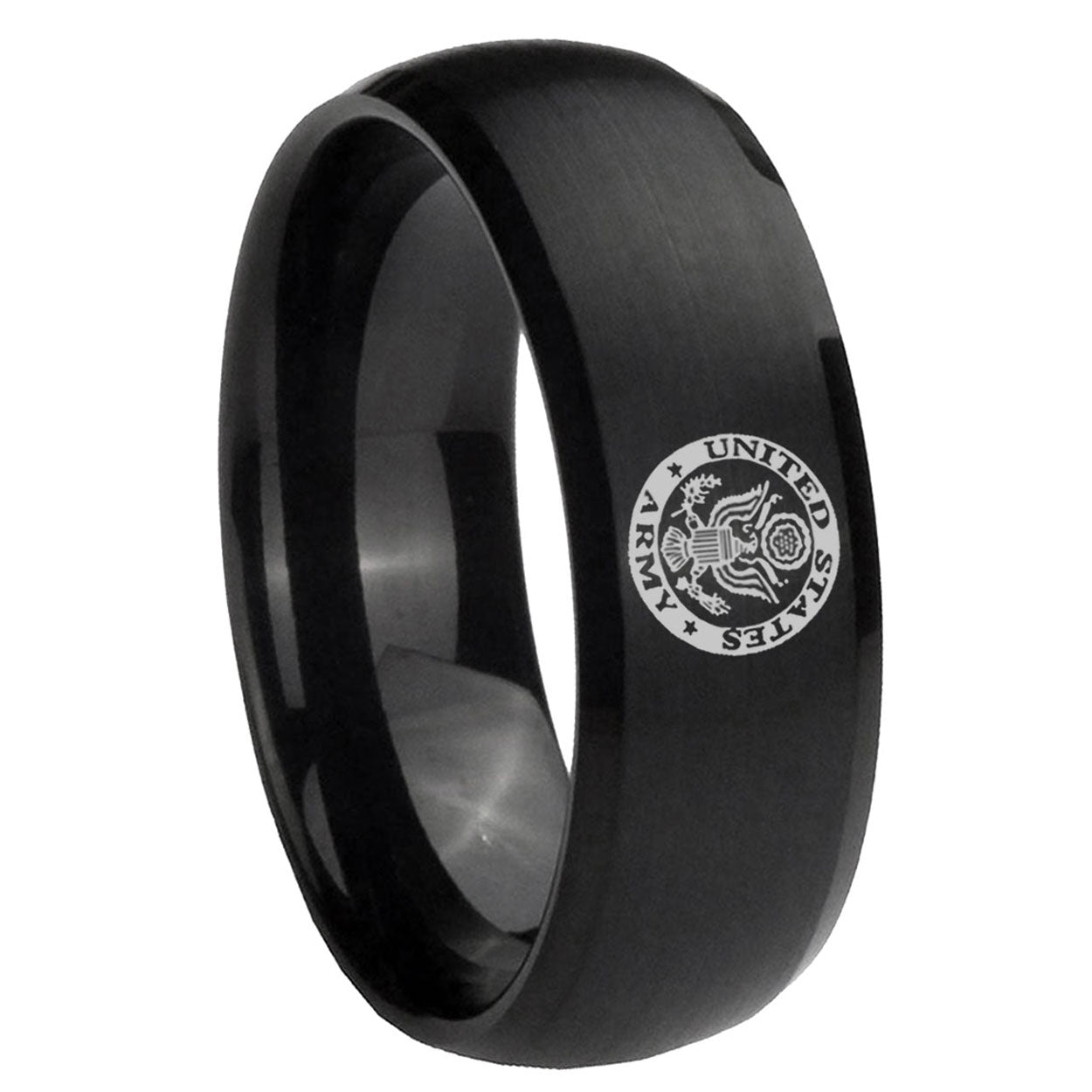 Intruding 5, 8mm U.S. Army Dome Brush Black Tungsten Carbide Engagement Ring . Offer in both 5mm and 8mm band width brush black plated finished from size 4 to 14
