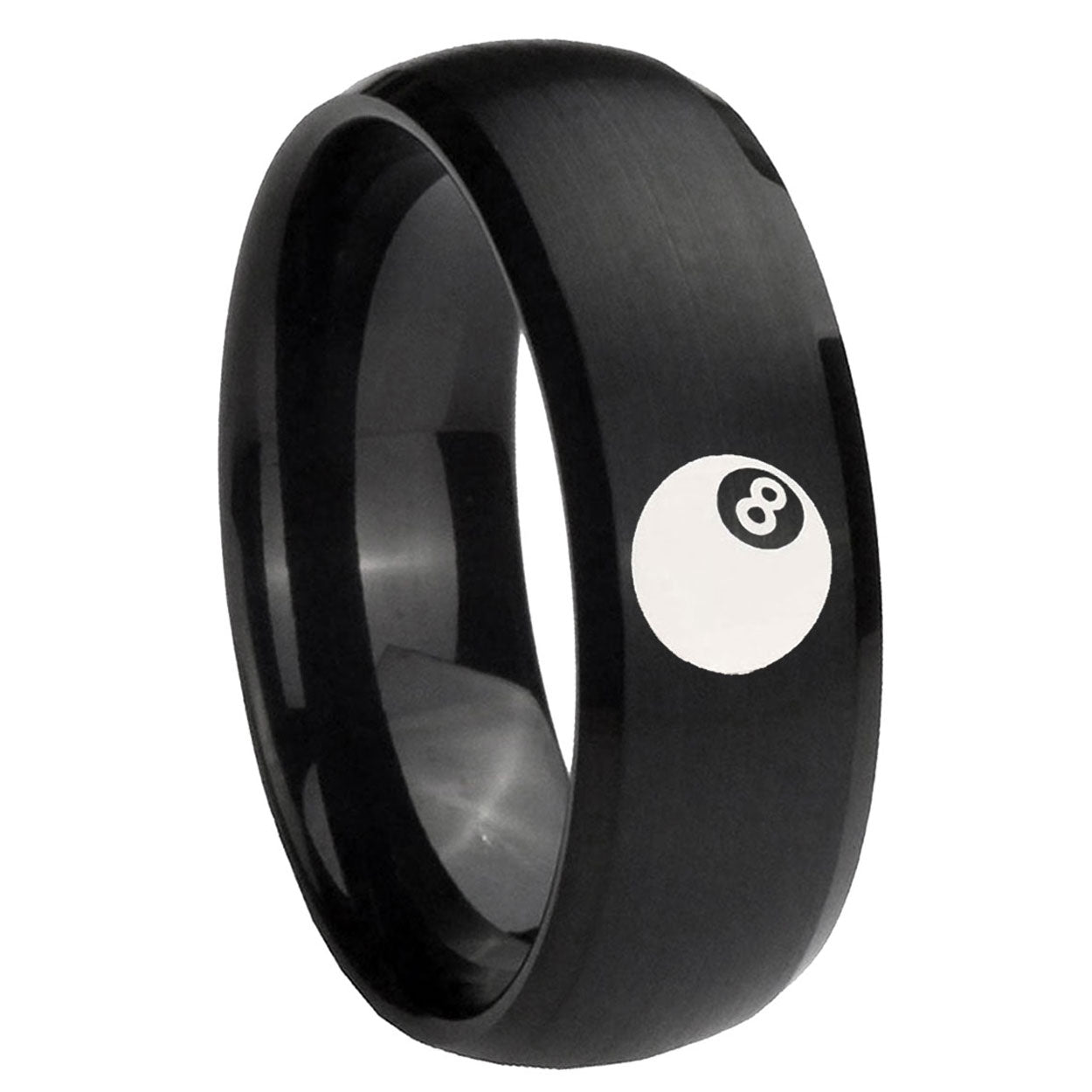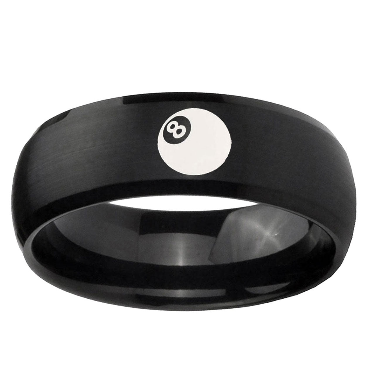 Intruding 5, 8mm 8 Ball Dome Brush Black Tungsten Carbide Men's Engagement Ring . Offer in both 5mm and 8mm band width brush black plated finished from size 4 to 14